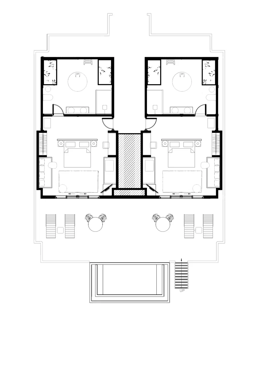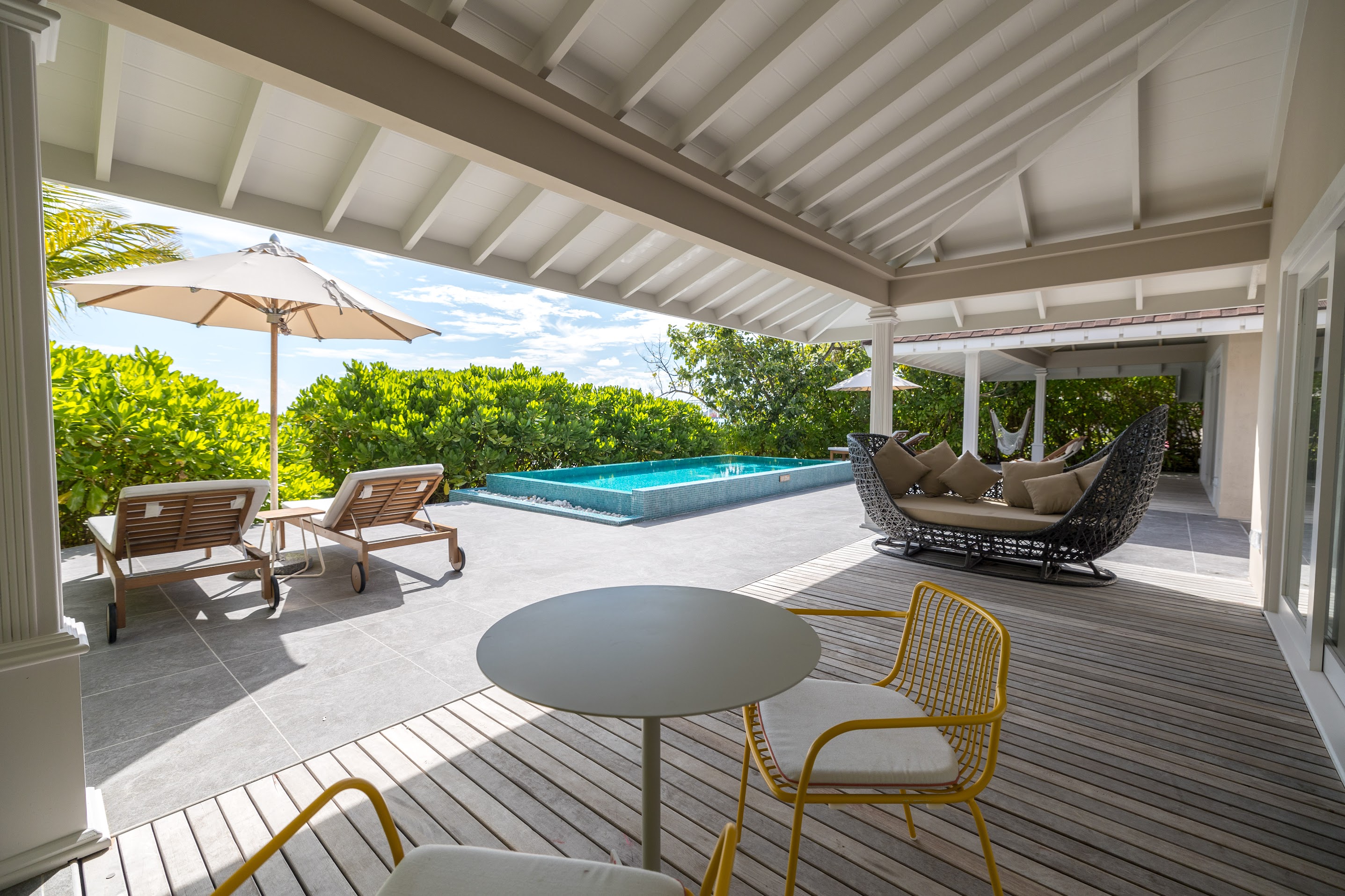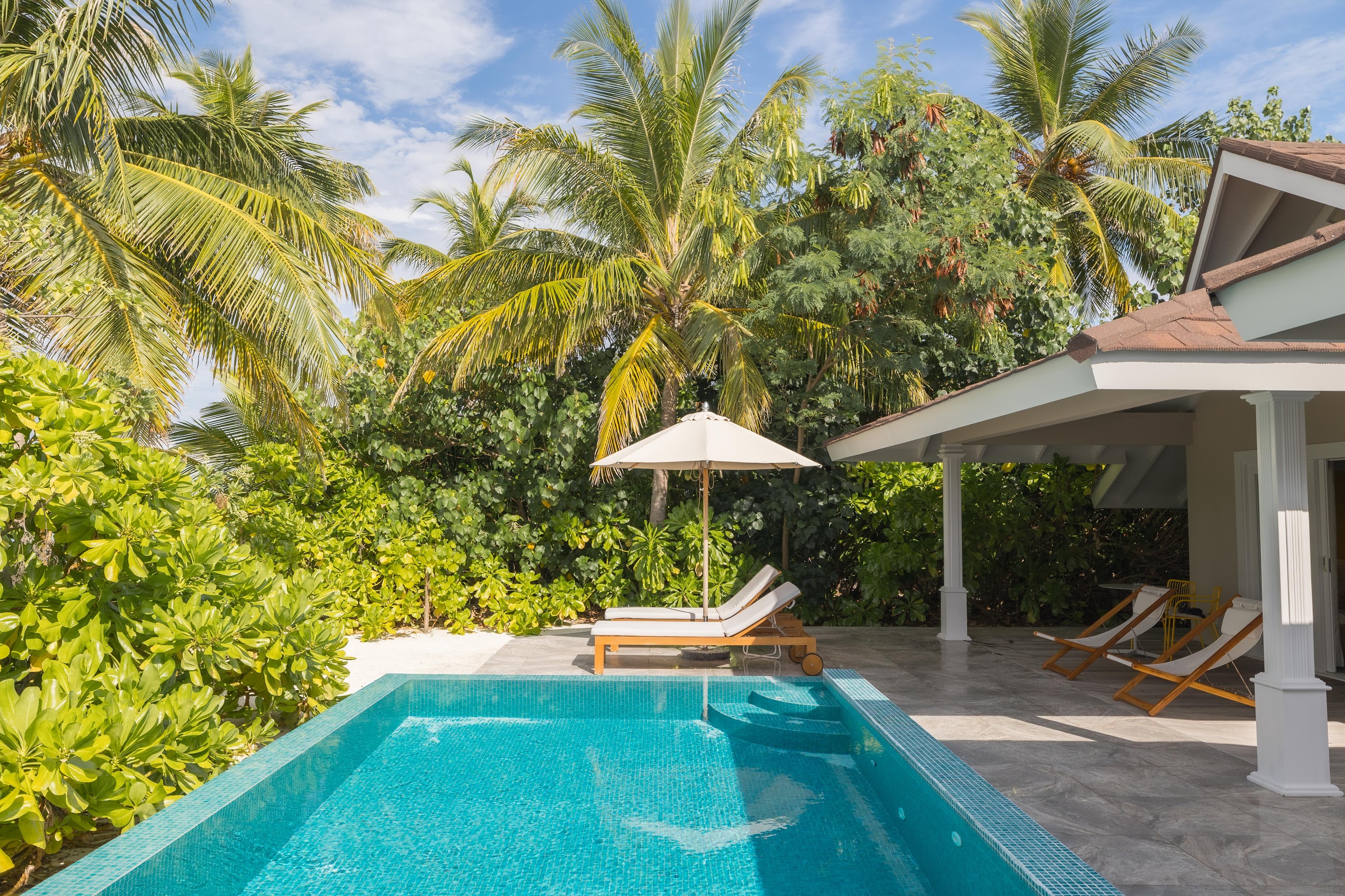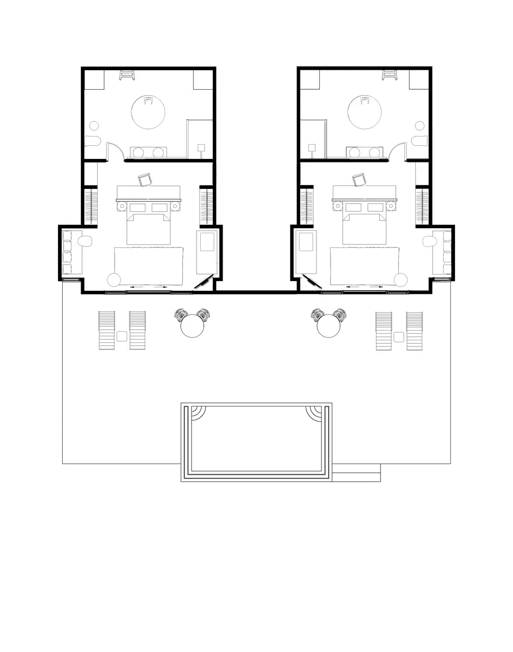 Вилла на берегу. 2 спальни с кроватями king-size и гостиными зонами, 2 ванные комнаты (каждая с ванной и душевой кабиной), терраса с бассейном.