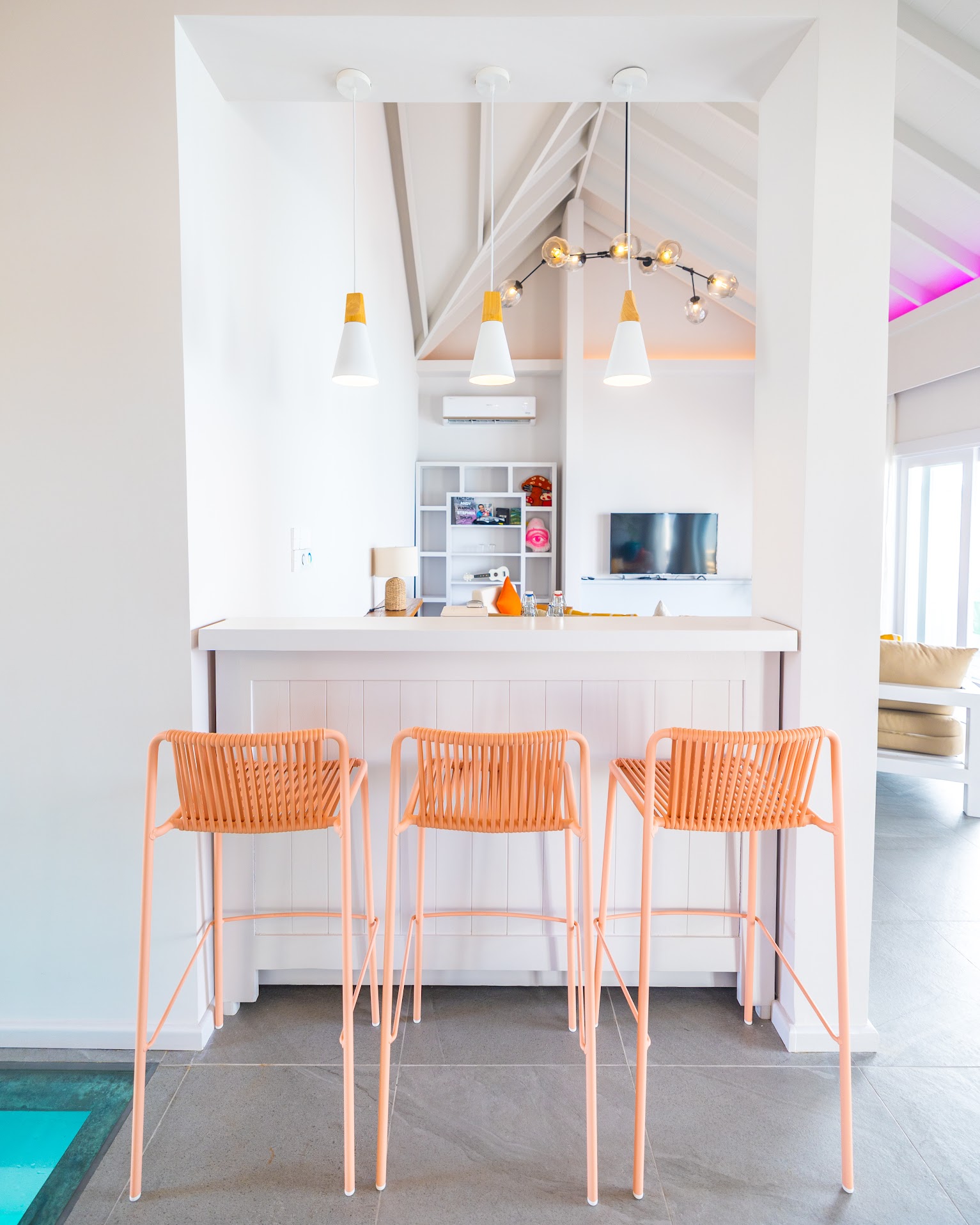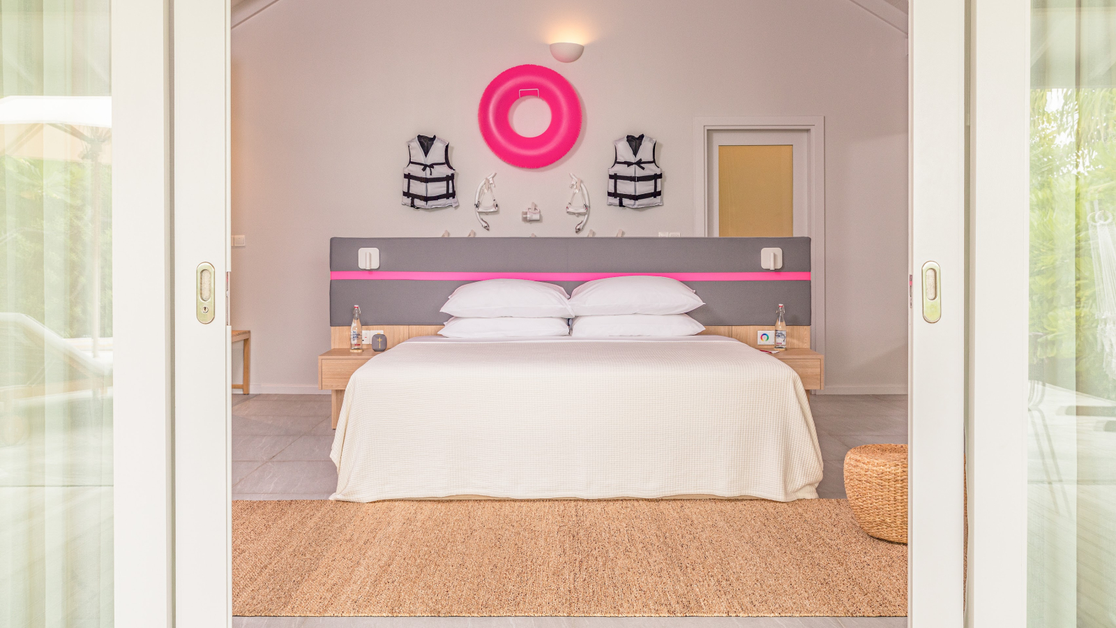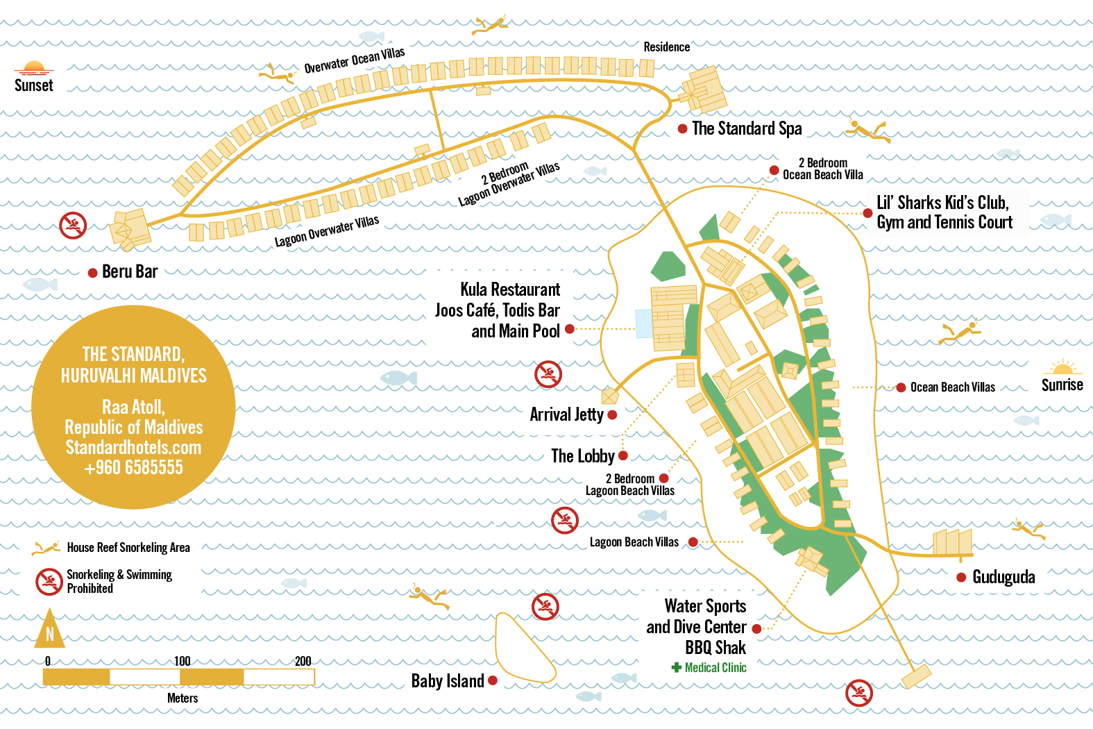 Входит в бренд The Standard Hotels группы World of Hyatt, отмечен наградой Tripadvisor Travelers’ Choice Awards 2025. Виллы размещены на пляже и на воде. На некоторых водных виллах в пол вмонтированы стеклянные панели для наблюдения за жизнью океана. У каждой есть собственный бассейн. Архитектурный проект разработан компанией Gedor Consulting, интерьеры – дизайнером Мэтью Гудричем из Нью-Йорка. The Standard Hotels известен дерзким, ироничным подходом к дизайну и атмосфере. Вместо привычной для Мальдив нейтральной палитры здесь используются яркие акценты – например, неоново-розовые надувные круги над кроватями и диско-шары в ванных комнатах. Туалетные принадлежности – Davines.