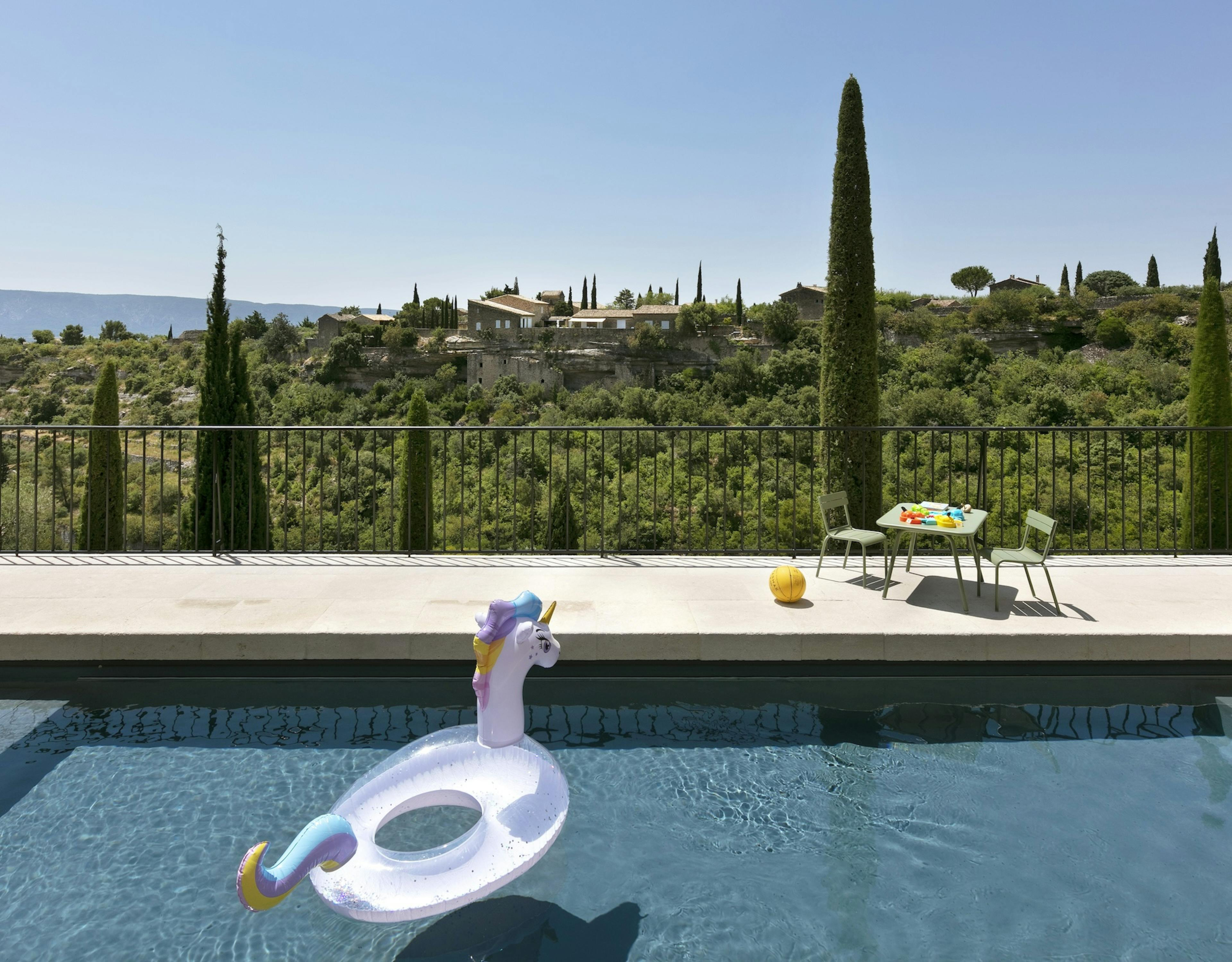 В ресторане Clover Gordes подают блюда от шеф-повара Жан-Франсуа Пьежа, обладателя звёзд Michelin. В спа-центре работают с косметикой Guerlain и Ouate. Для детей открыт летний лагерь с собственным бассейном и ежедневной программой.