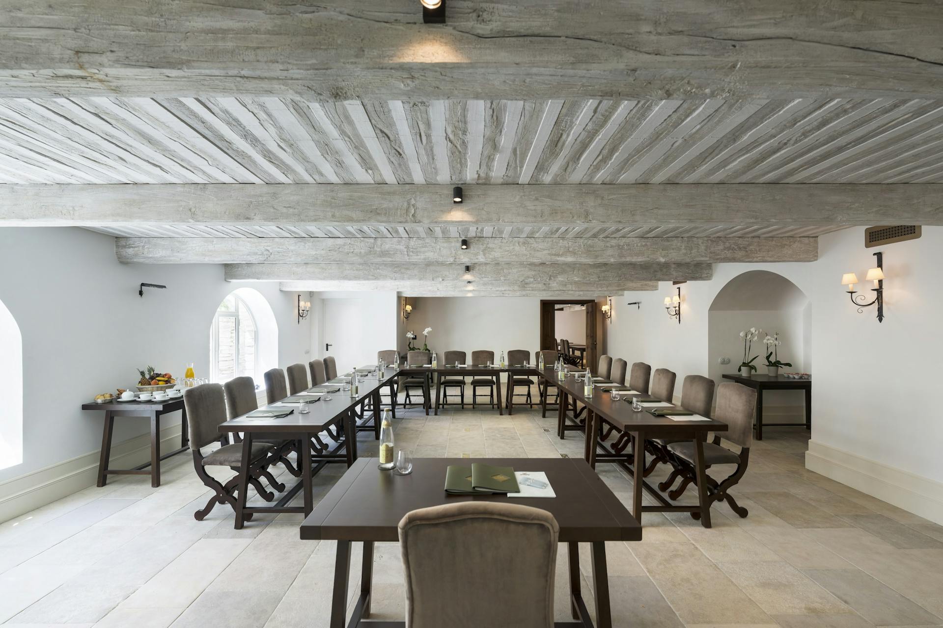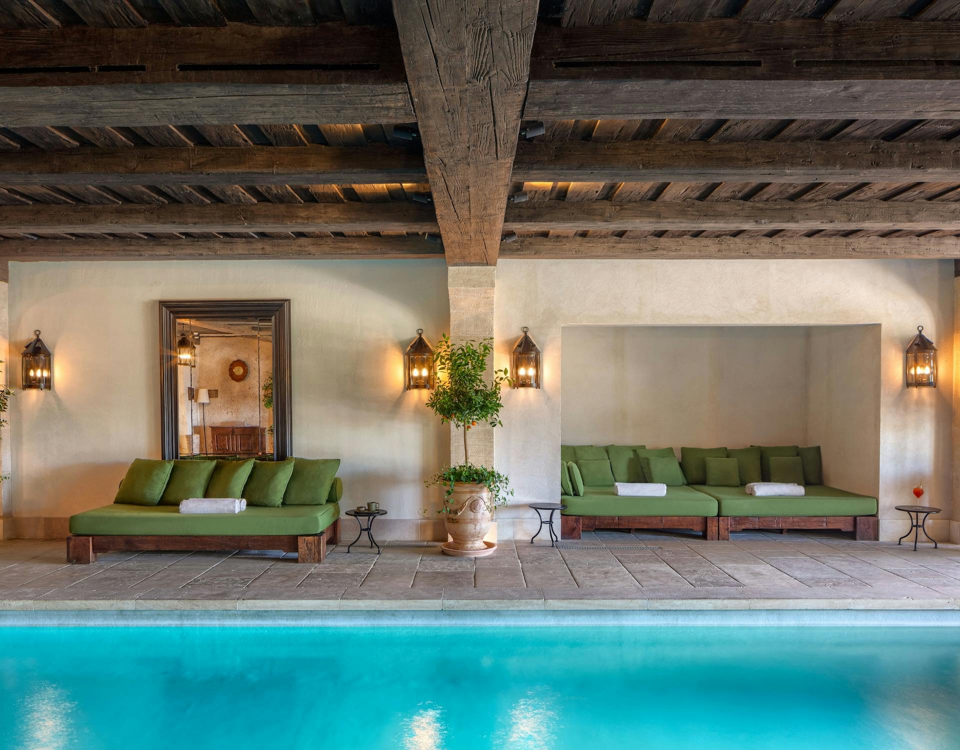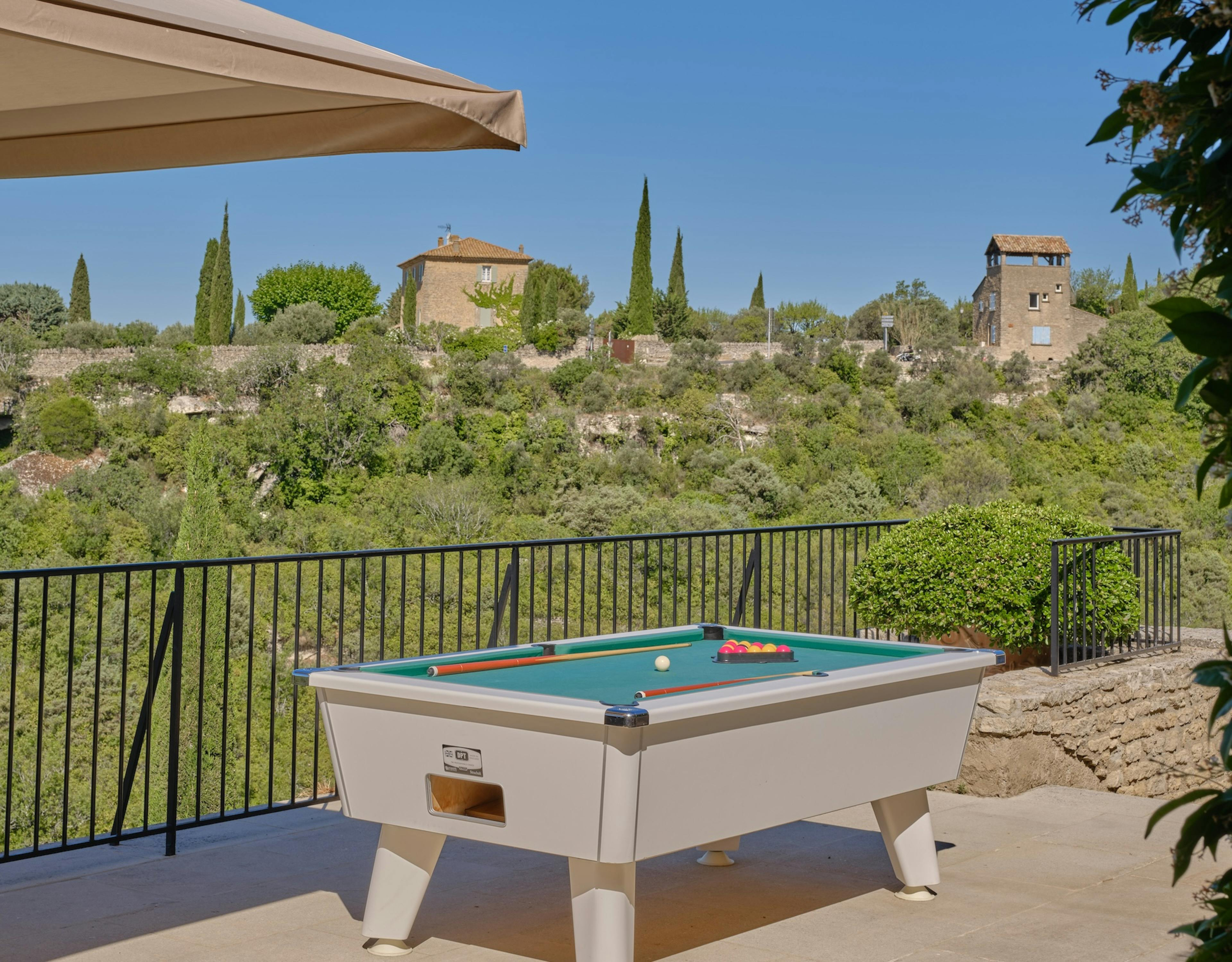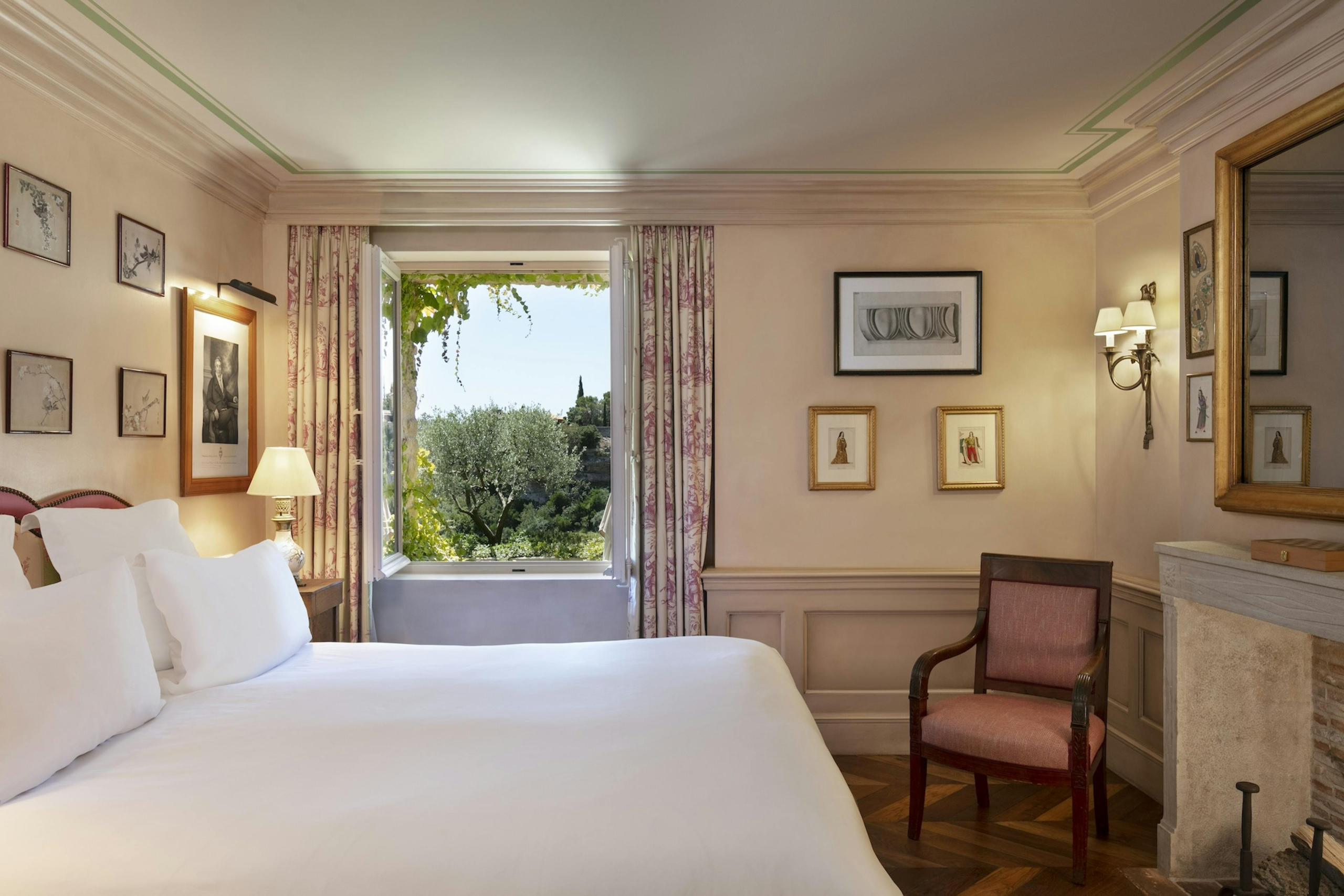 40 номеров, вилла, 4 ресторана, бар, чайный салон, открытый бассейн, детский открытый бассейн, крытый бассейн, спа-центр, тренажёрный зал, студия йоги, 2 поля для гольфа (Golf International de Pont Royal и Golf de Saumane), конный клуб, каноэ, детский клуб, кинотеатр под открытым небом, обсерватория, 5 конференц-залов, бутик, аренда винтажного автомобиля Citroën 2CV, прокат электровелосипедов, гараж, парковка.