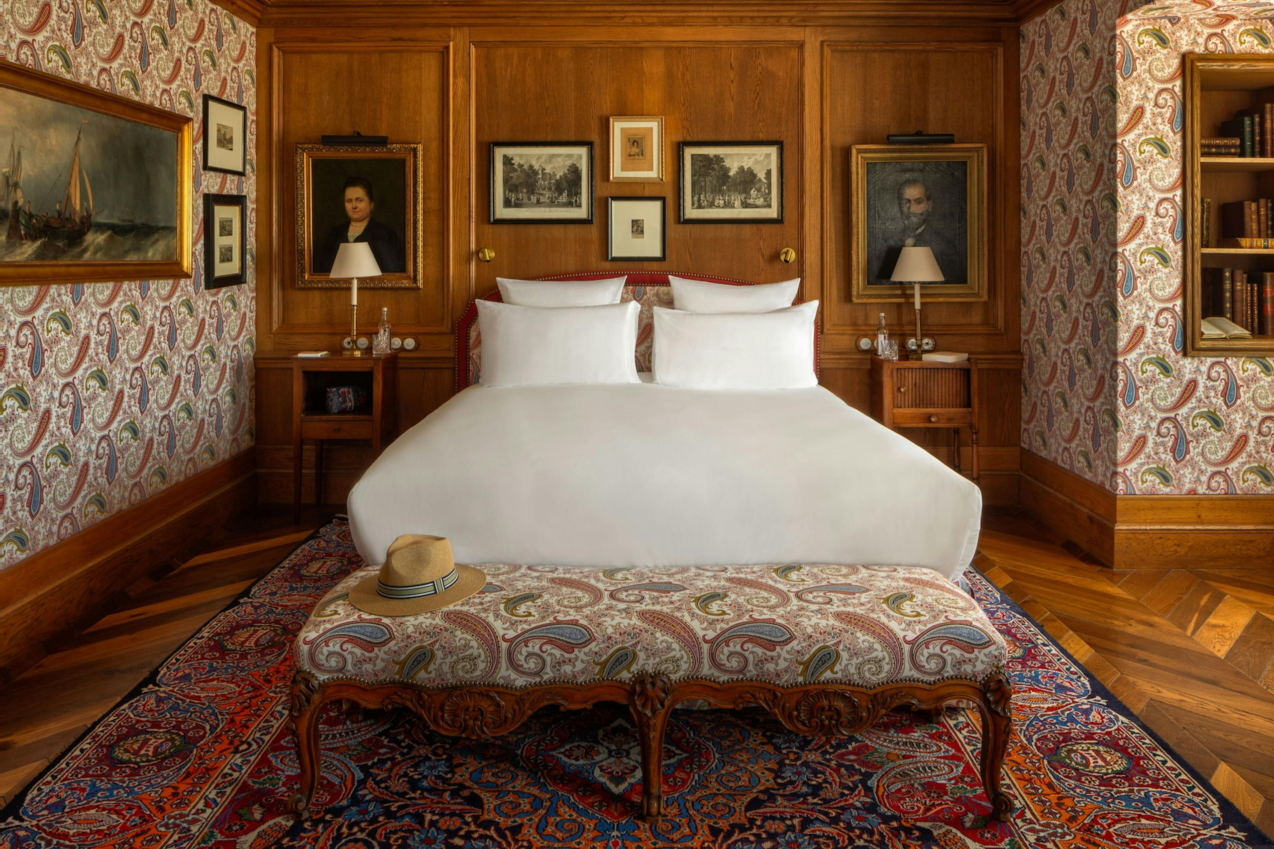 Спальня с кроватью king-size, гардеробная, ванная комната с ванной или душем. В некоторых номерах есть камин.