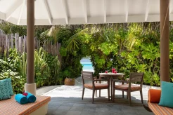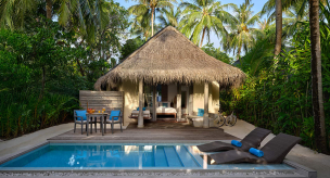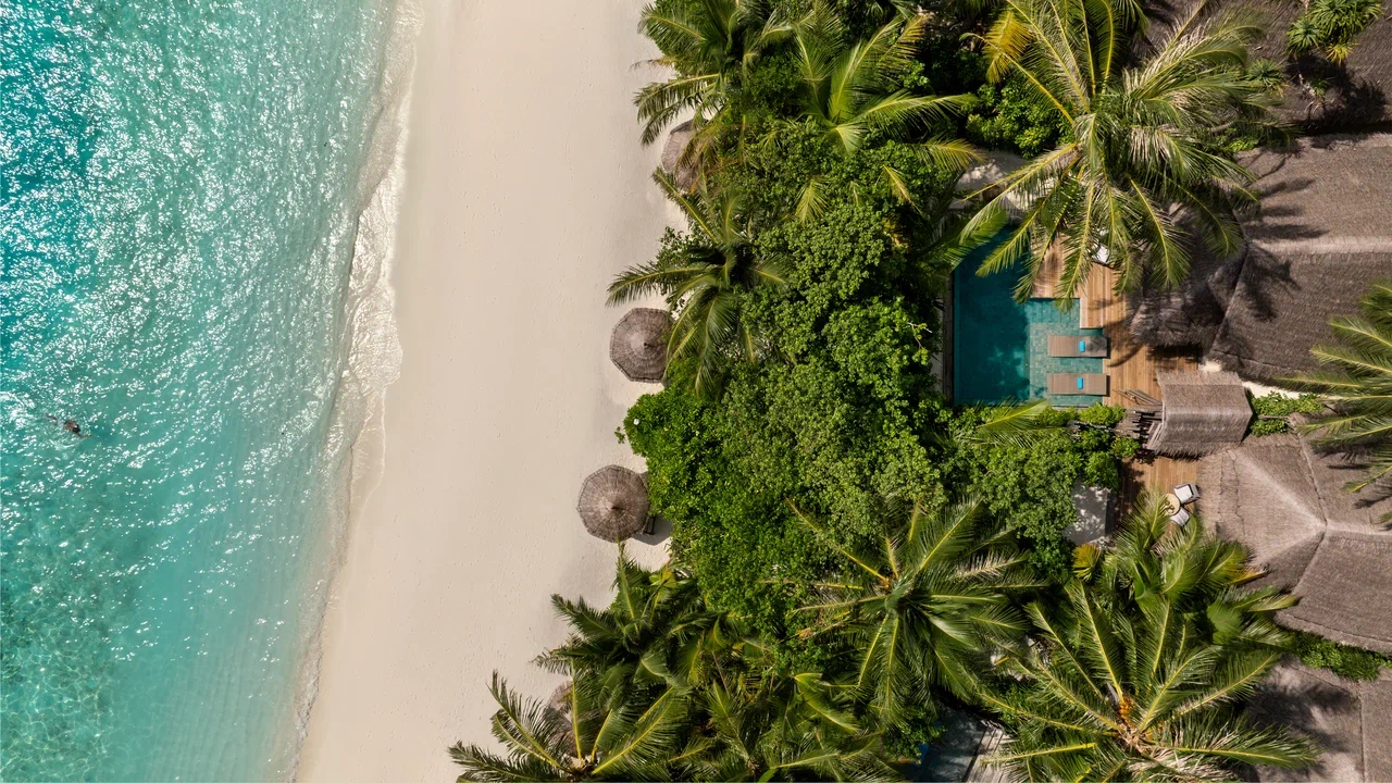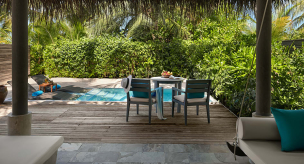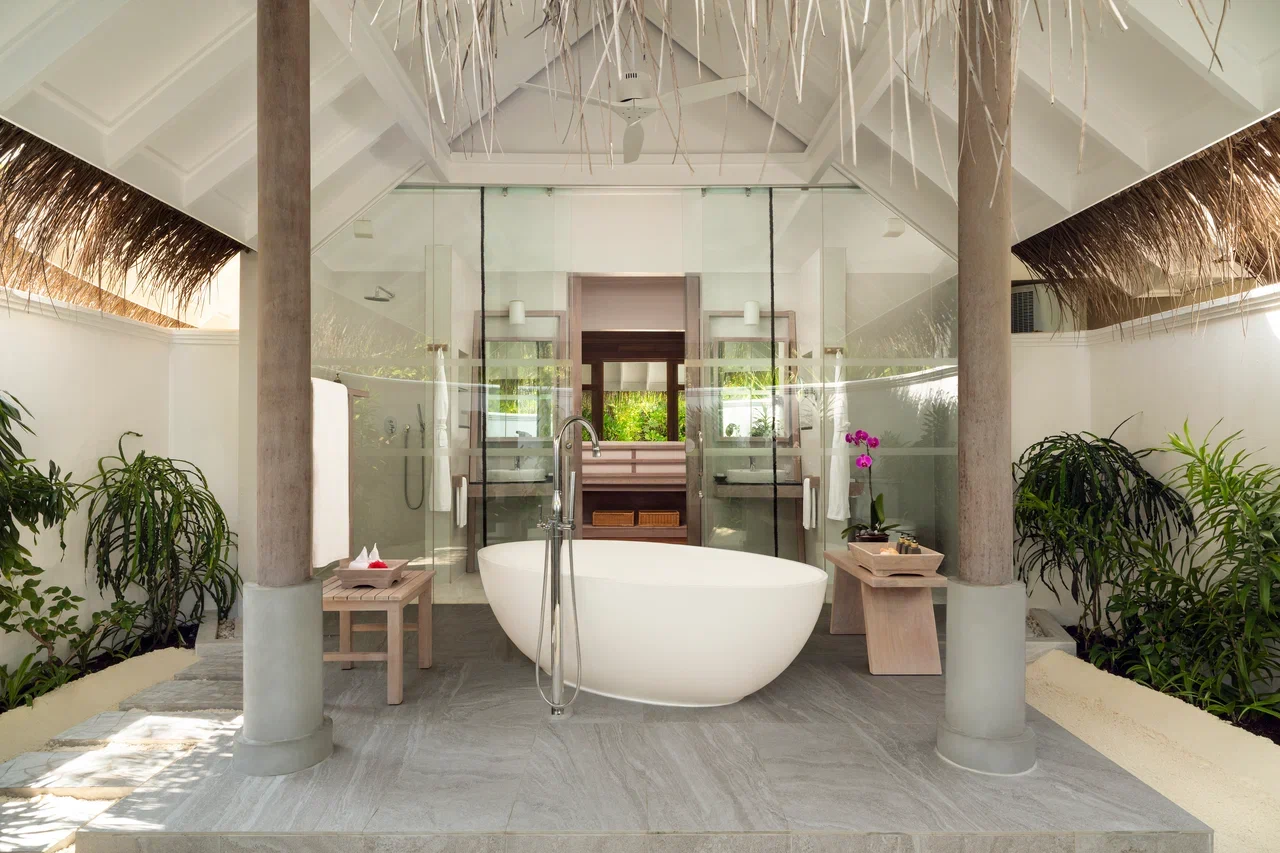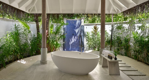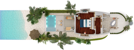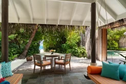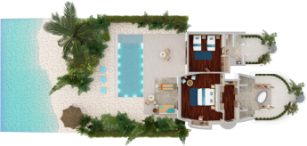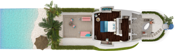 Вилла на берегу. 2 спальни (одна – с кроватью king-size, другая – с кроватями twin), гардеробная, 2 ванные комнаты (каждая с душевой кабиной), ванна на открытом воздухе, 2 душа на открытом воздухе, терраса с бассейном.