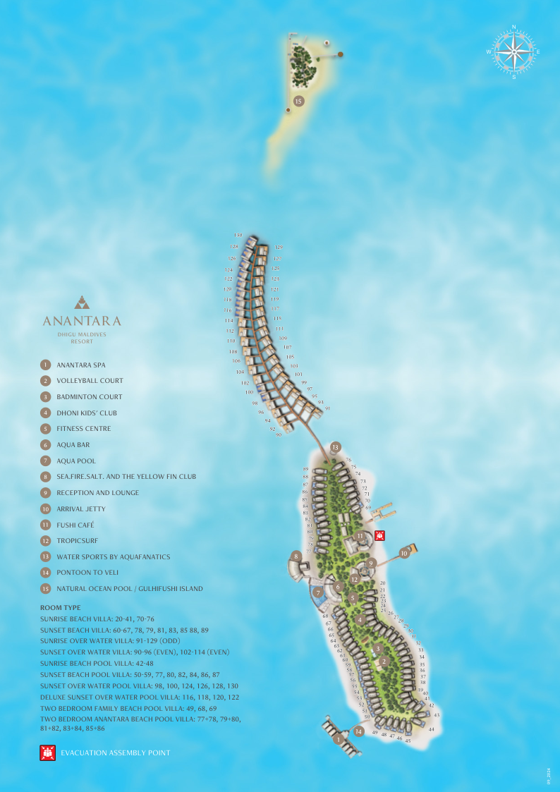Расположен на острове в атолле Южный Мале и входит в кластер Anantara, объединённый общей лагуной и частично общей инфраструктурой курортов, находящихся на соседних островах. В пределах 30 минут пути на катере находится более 35 дайв-сайтов, в лагуне также доступны споты для снорклинга и сёрфинга.