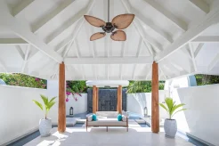 Вилла на берегу. 2 спальни (одна – с кроватью king-size, другая – с кроватями twin), 2 гардеробные, 2 ванные комнаты (каждая c душевой кабиной и ванной и душем на открытом воздухе), терраса с бассейном и беседкой.