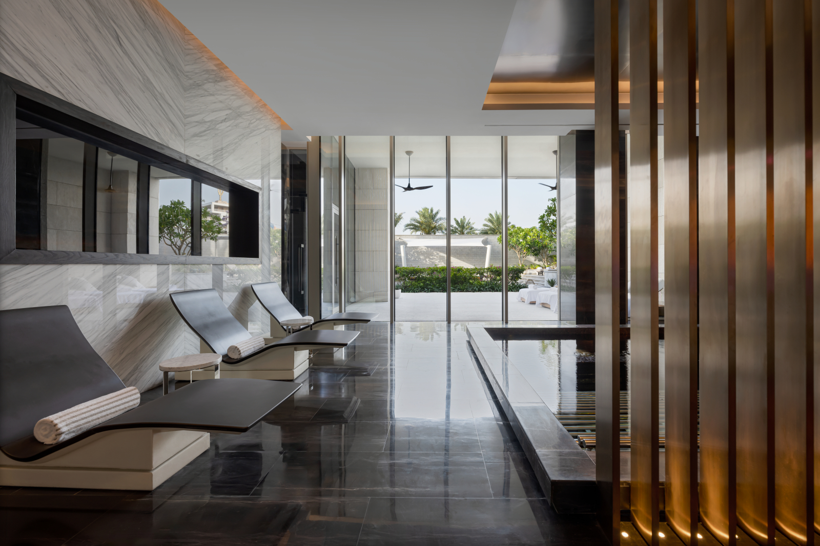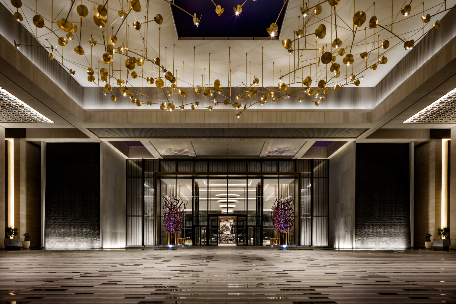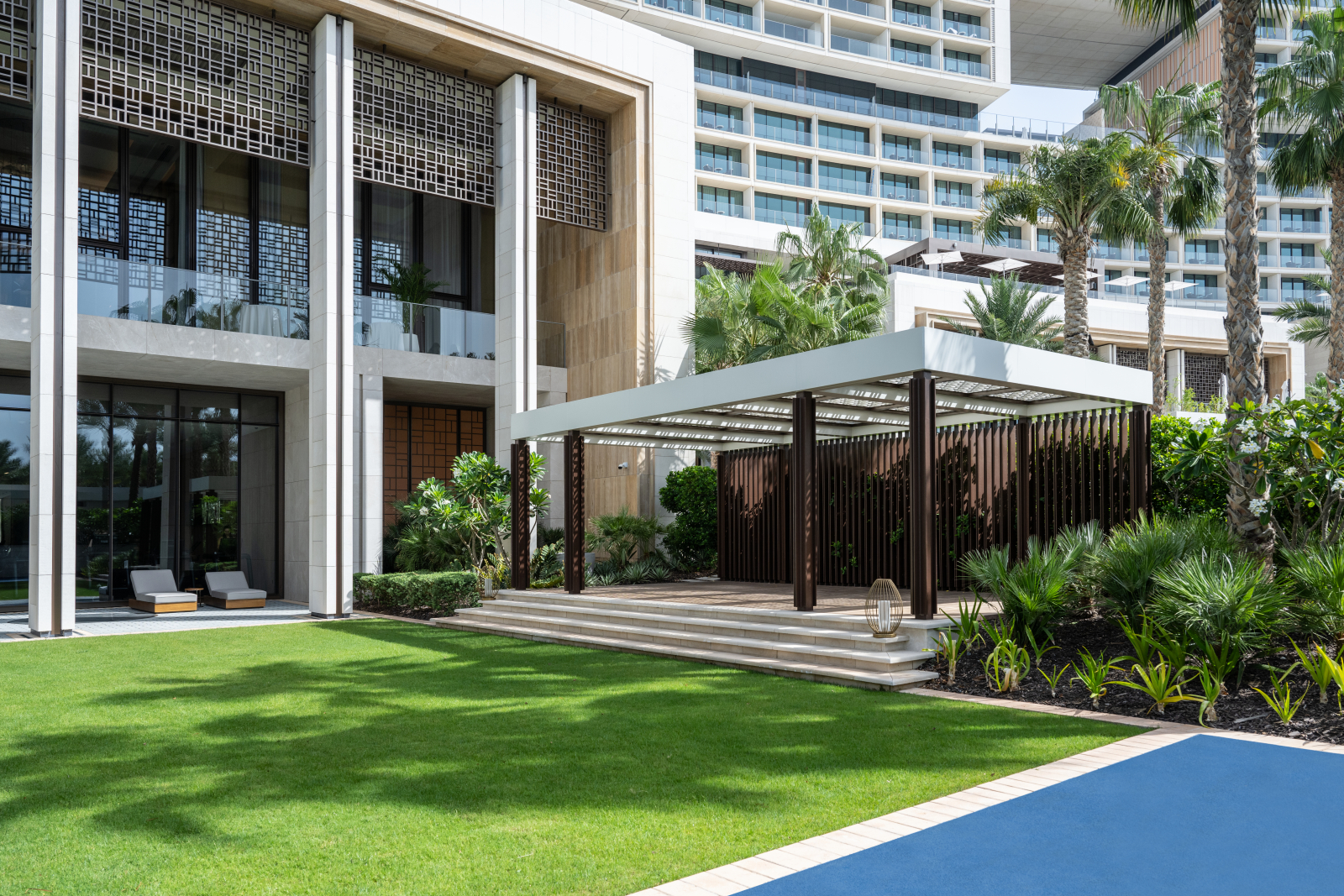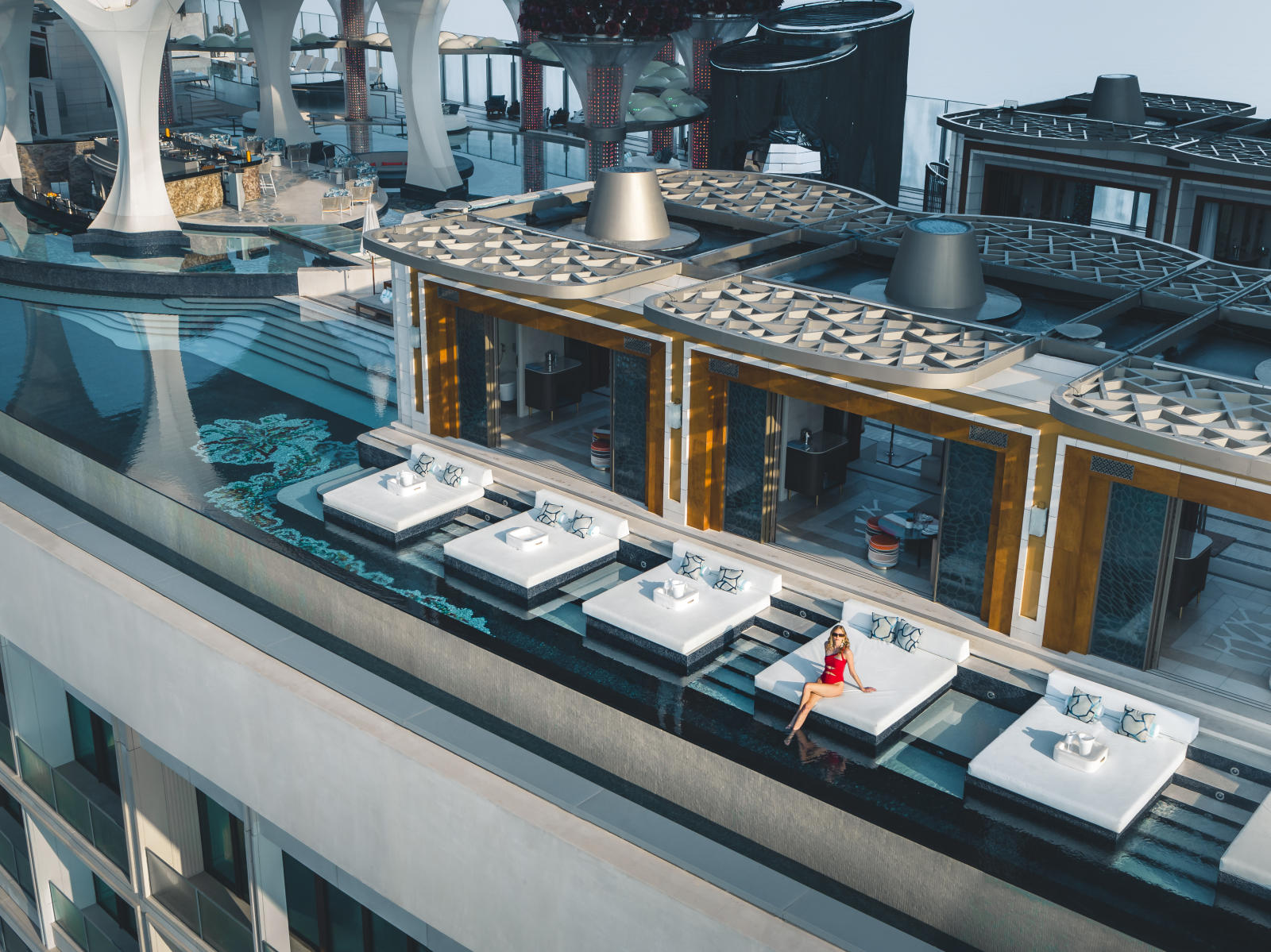 Входящий в международную сеть Atlantis Resorts гостиничной группы Kerzner International Atlantis The Royal является воплощением смелого архитектурного замысла. Комплекс, разработанный нью-йоркским бюро Kohn Pedersen Fox, представляет собой монументальное сооружение длиной 500 м и высотой 178 м, чья динамичная композиция из смещённых объёмов вызывает ассоциации с игрой «Тетрис». Уникальные «небесные» проёмы между корпусами трансформированы в многоуровневые террасы с висячими садами, водными каскадами и приватными бассейнами. Общественные пространства превращены в галереи современного искусства с впечатляющими инсталляциями от именитых дизайнеров.