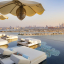 Ультрароскошный курорт Atlantis The Royal расположен на острове Пальма Джумейра, в 30 минутах езды от международного аэропорта Дубая. Территория отеля служит эпицентром мировых развлечений: в 10 минутах ходьбы от него находятся крупнейший на планете аквапарк Aquaventure со 105 аттракционами, дельфинарий и футуристический аквариум The Lost Chambers, населённый 65 тыс. морских обитателей. Курорт предлагает гостям эксклюзивный доступ к частному песчаному пляжу протяжённостью 2 км и обладает панорамным инфинити-бассейном, парящим на высоте 100 м над уровнем моря.