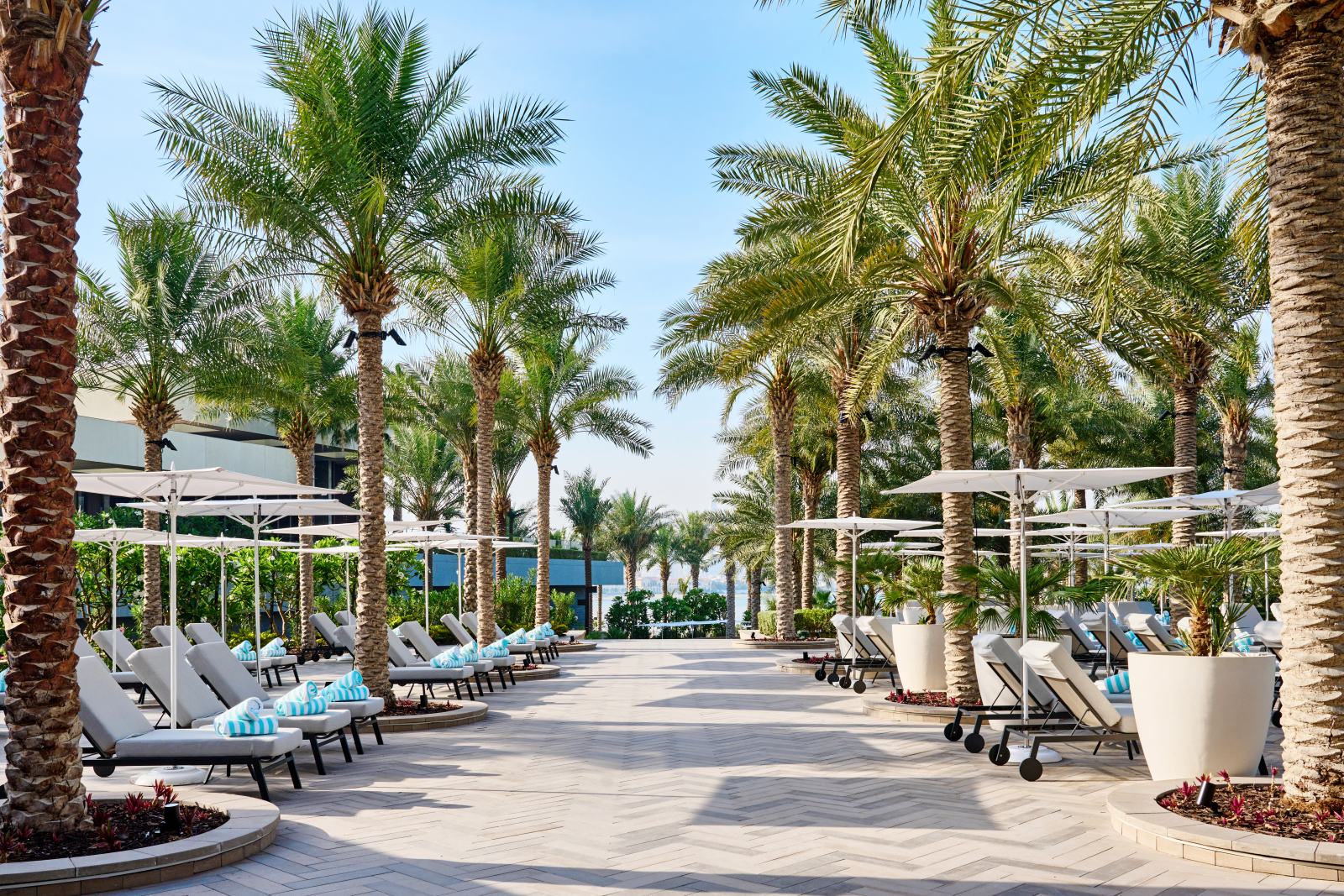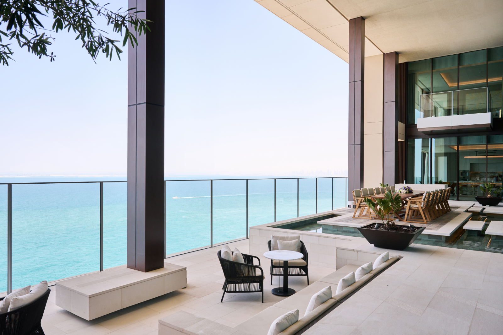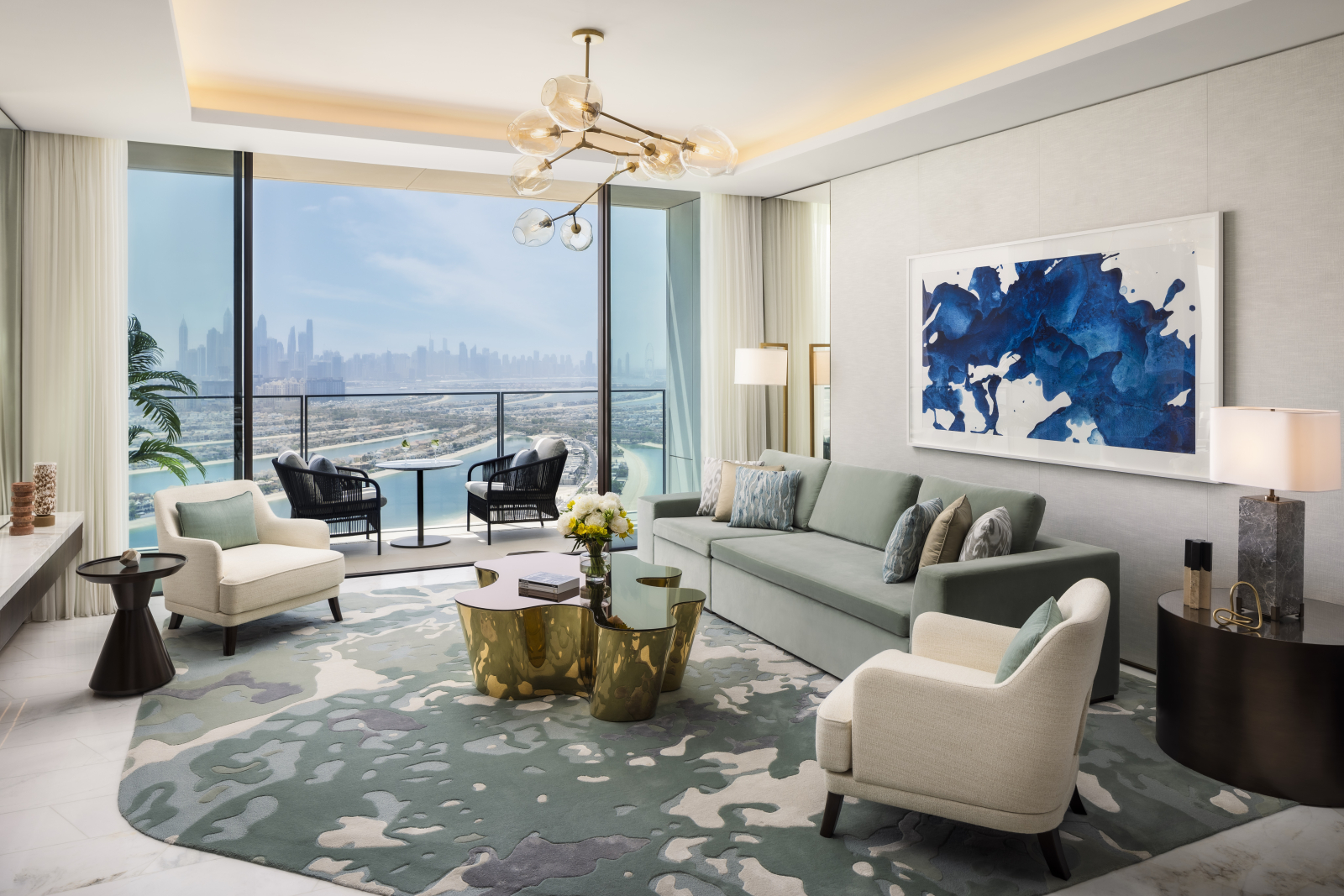 Номера и люксы выдержаны в палитре прибрежного ландшафта – от цвета песка до лазури Персидского залива. Каждый содержит в себе детали высочайшего качества: парфюмерные средства Hermès и Acqua di Parma, элитный текстиль Frette и Graff, персонализированное меню подушек и ортопедические матрасы ручной работы Hypnos. Круглосуточное персональное обслуживание обеспечивает профессиональный штат батлеров.