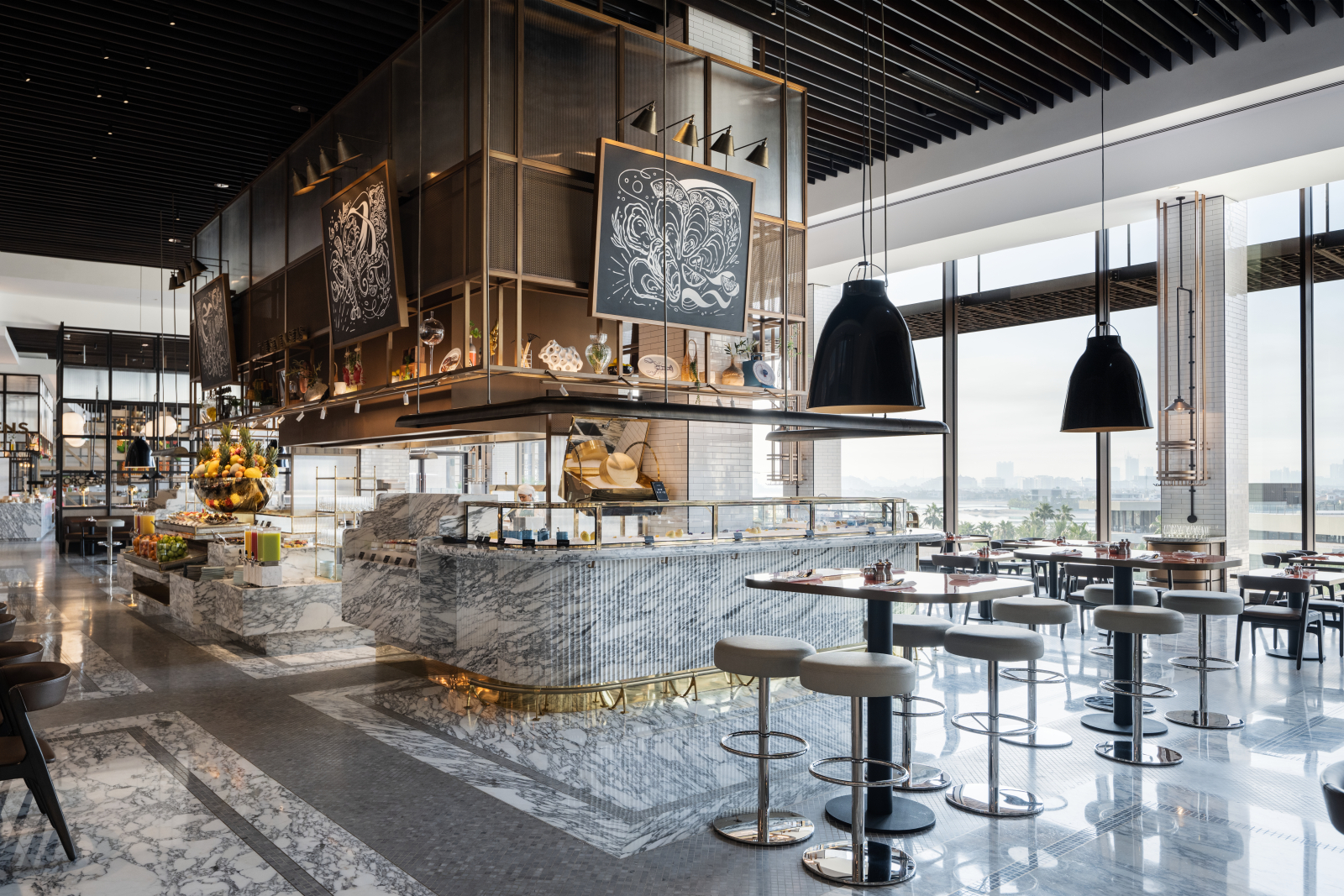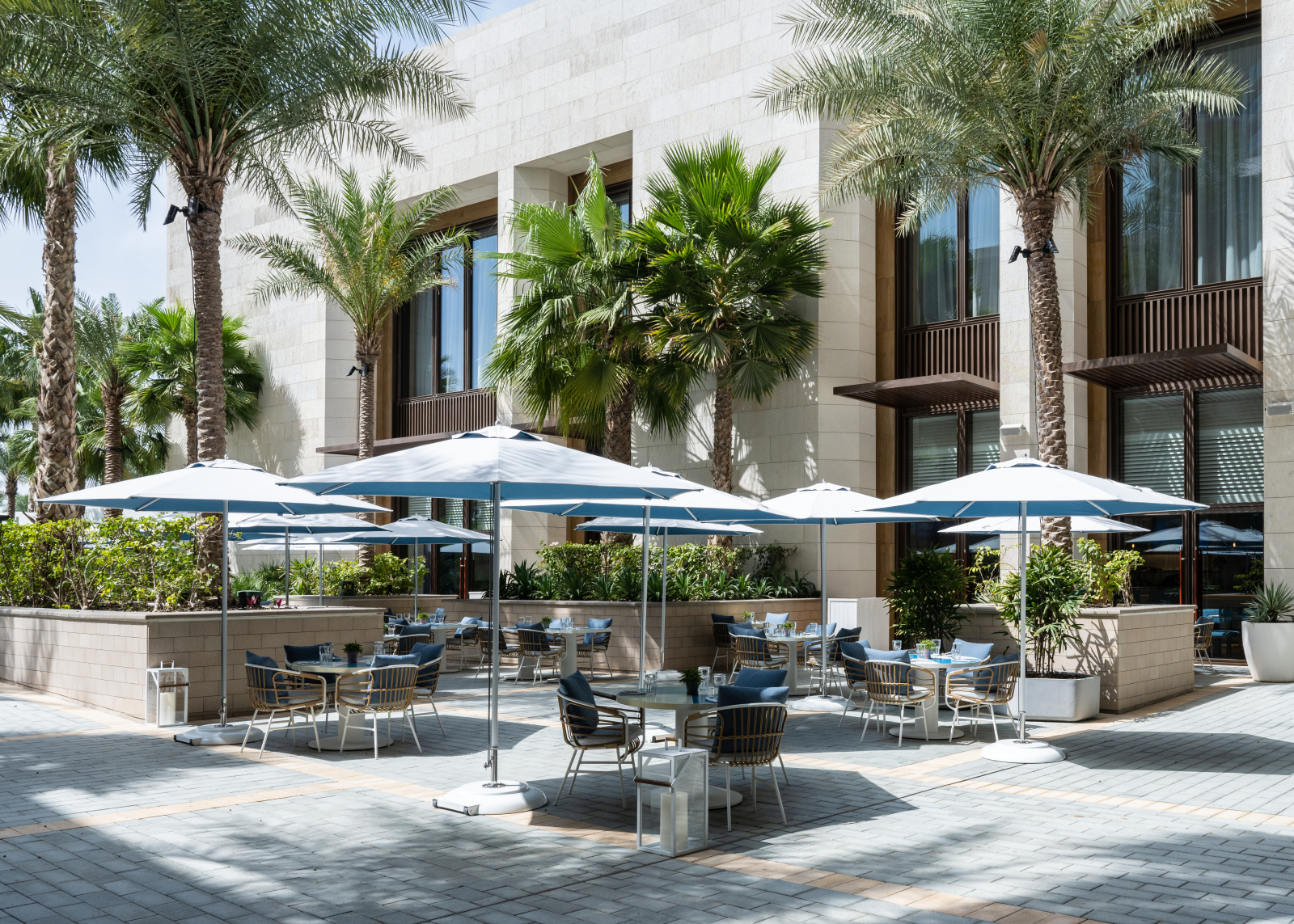 На территории отеля представлены 10 ресторанов, восемь из них курируются шеф-поварами с мировой известностью. Ресторан Dinner by Heston Blumenthal, отмеченный звездой Michelin, возрождает исторические рецепты британской кухни. Также отмечены в гиде Michelin заведения Ariana’s Persian Kitchen, La Mar и Milos. Дополняют инфраструктуру модный пляжный клуб от Nobu, видовой бассейн, созданный в сотрудничестве Cloud 22 с Dolce&Gabbana и онлайн-ретейлером люксовых товаров Ounass, а также бутики ведущих люксовых брендов – например, первый на Ближнем Востоке магазин Louis Vuitton.
