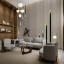 На 1-м уровне: 2 спальни с кроватями king-size, гостиная, обеденная зона, рабочее пространство, кухня, гардеробная, 3 ванные комнаты (две – с ванной и душем, одна – с душем), 2 гостевых туалета, 2 балкона. Гостиная и спальни разделены дверями.