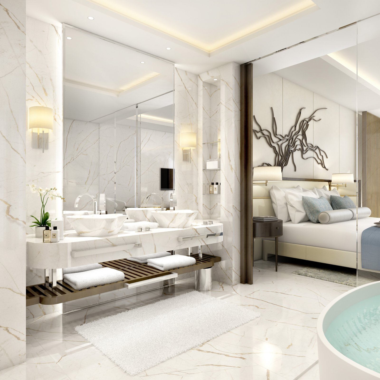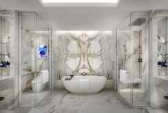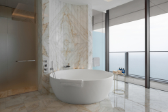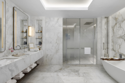 2 спальни (одна – с кроватью king-size, другая – с 2 кроватями queen-size), 2 гардеробные, 2 ванные комнаты (каждая с ванной и душем), 2 балкона.