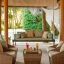Вилла на берегу. Спальня с кроватью king-size, гостиная, ванная комната с ванной и душевой кабиной, душ на открытом воздухе, терраса с обеденной зоной на открытом воздухе, качелями и бассейном. Гостиная и спальня разделены дверью.