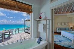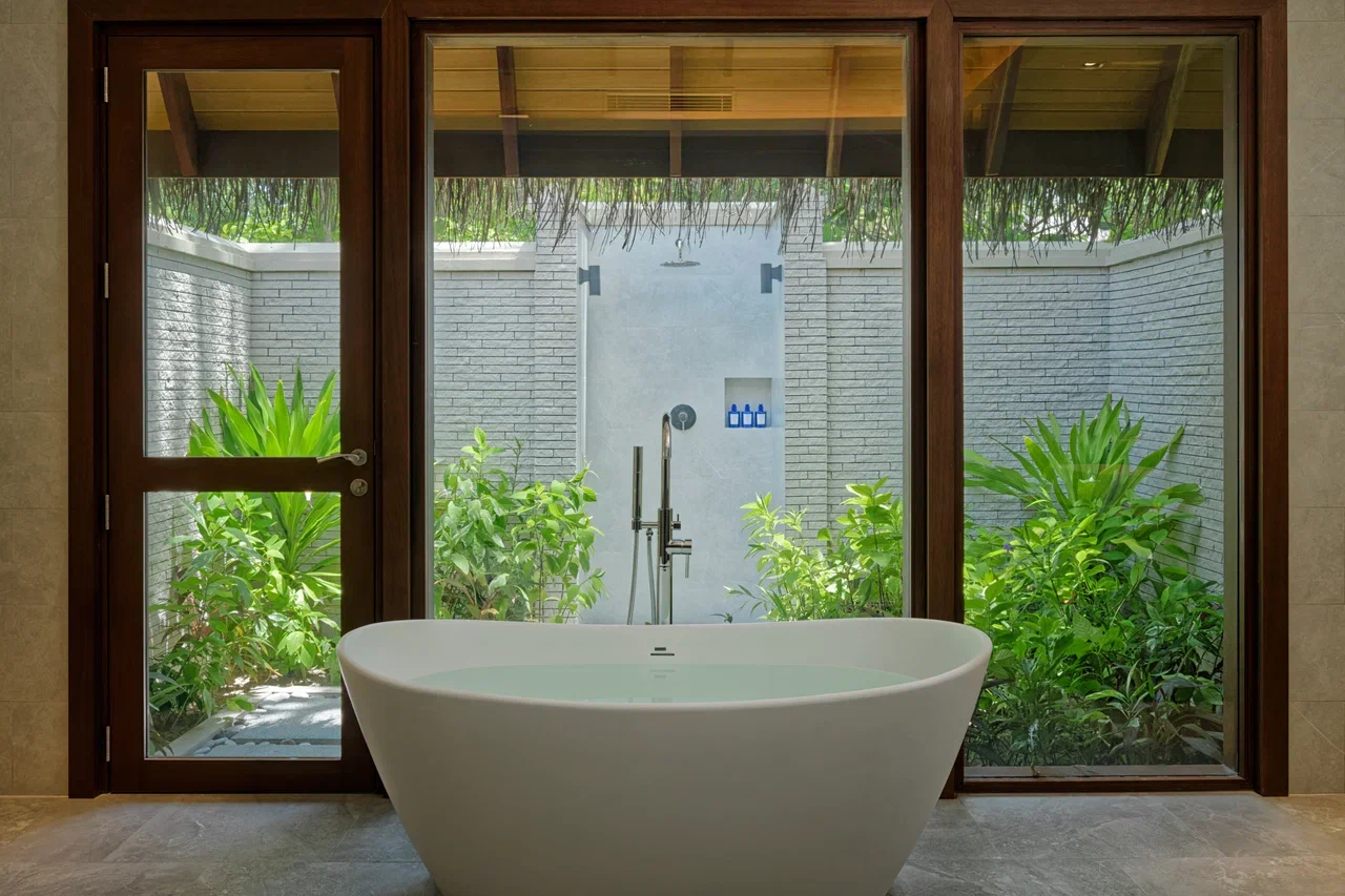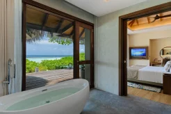 Вилла на берегу. Спальня с кроватью king-size, гостиная зона, гардеробная, ванная комната с ванной и душевой кабиной, душ на открытом воздухе, терраса.