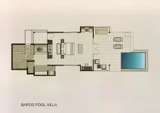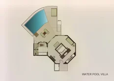 Вилла на воде. Спальня с кроватью king-size, гостиная зона, ванная комната с ванной, терраса с бассейном, прямой спуск к воде.