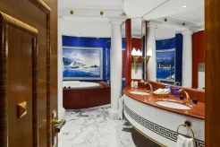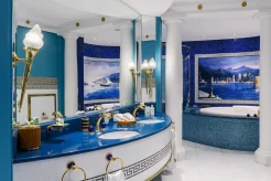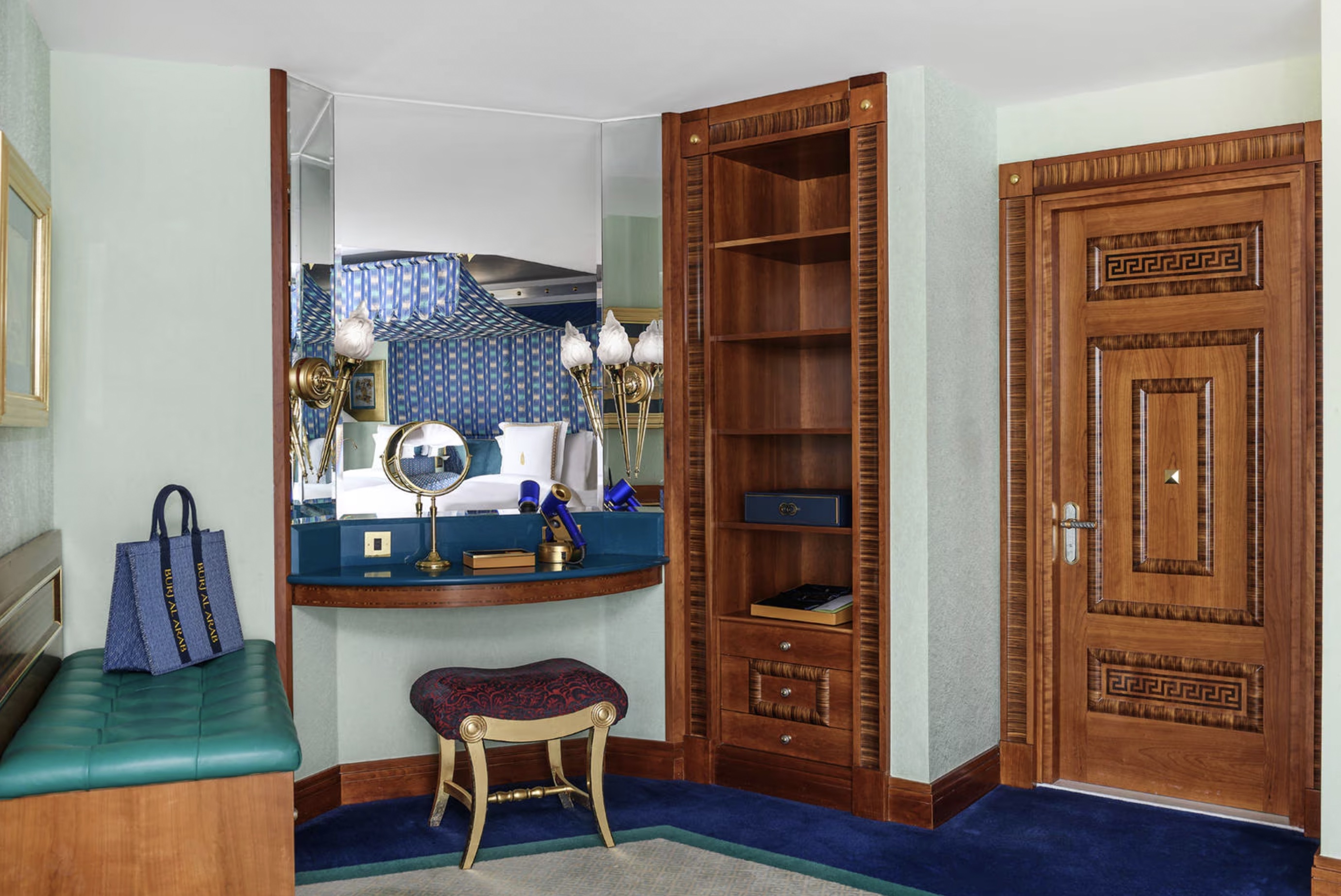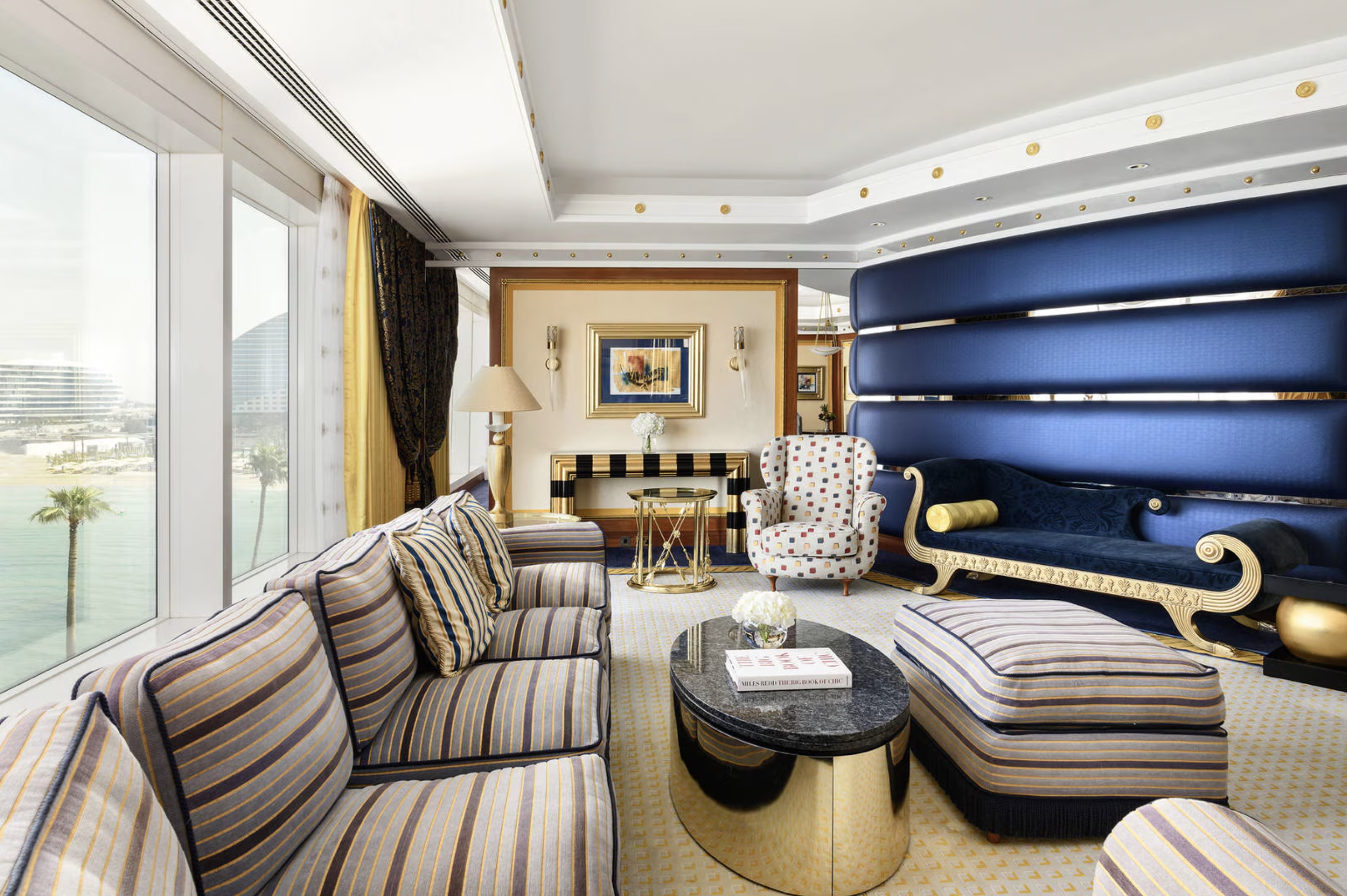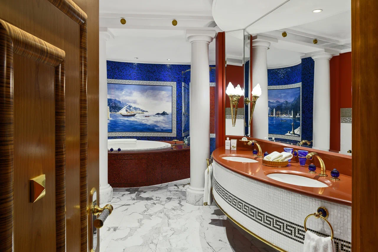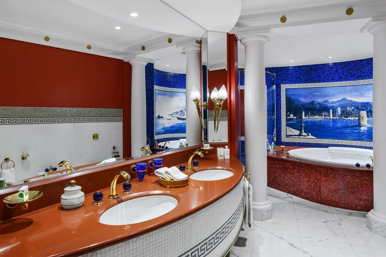 Здесь нет стандартных комнат, все 202 номера – роскошные двухуровневые люксы (от 170 кв. м) с панорамными окнами, из которых открывается грандиозный вид на море. Для оформления номеров использовано около 1,8 тыс. кв. м 24-каратного сусального золота и более 24 тыс. кв. м мрамора Statuario, а также мебель из ценных пород дерева, дорогие ковры и подлинные произведения искусства. Гостям предлагается 17 видов подушек из специального меню и уникальные одеяла, пух для которых собирают в брошенных гагачих гнёздах в Исландии. Предоставляются услуги персонального батлера.