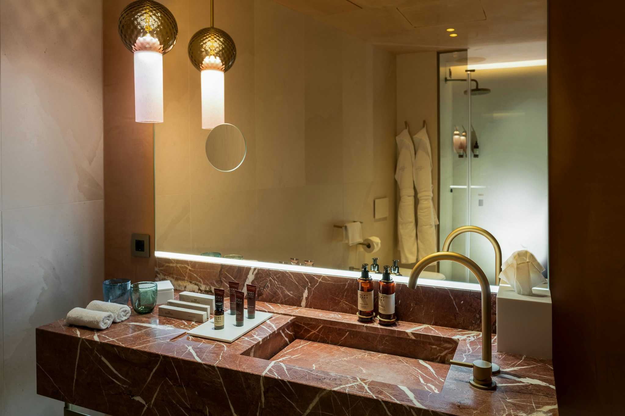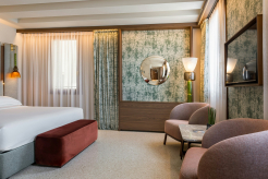 Главный ресторан VERO под руководством исполнительного шеф-повара Кармине Амаранте предлагает современный креативный подход к высокой итальянской кухне. Особенно популярна терраса отеля на набережной, с которой открывается вид на базилику Сан-Джорджо-Маджоре, – идеальное место для истинно итальянского аперитива. Во внутреннем дворике расположен менее формальный ресторан Essentia, а интерьер бара Alchemia отсылает к классическим заведениям Нью-Йорка 1960-х годов.