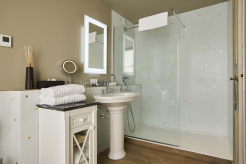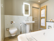 Спальня с кроватью king-size или кроватями twin, ванная комната с ванной или ванной и душевой кабиной.