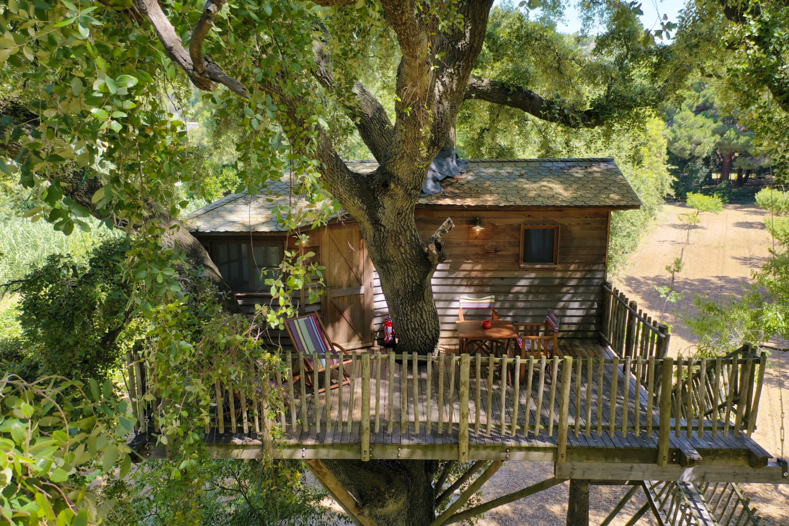 Дом на дереве, в 3 м над землёй. 2 спальни (одна – с кроватью queen-size, другая – с двухъярусной кроватью), гостиная зона, ванная комната с душевой кабиной, терраса.