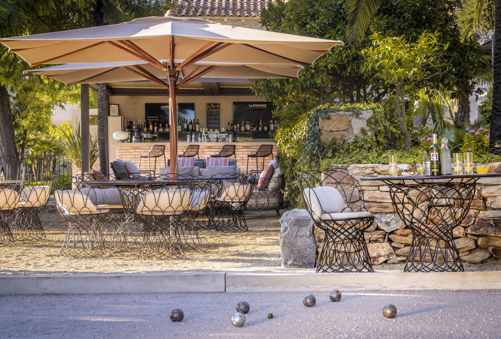 Ресторан La Palmeraie удостоен одной звезды Michelin и двух колпаков Gault & Millau. Часть продуктов для кухни выращивают в собственном огороде; также здесь есть своя винодельня. В спа-центре предлагают процедуры на основе косметики NUCCA. Гости также могут посещать ресторан отеля La Pinède Plage, расположенный прямо на берегу моря. Для исследования окрестностей доступны бесплатные велосипеды.
