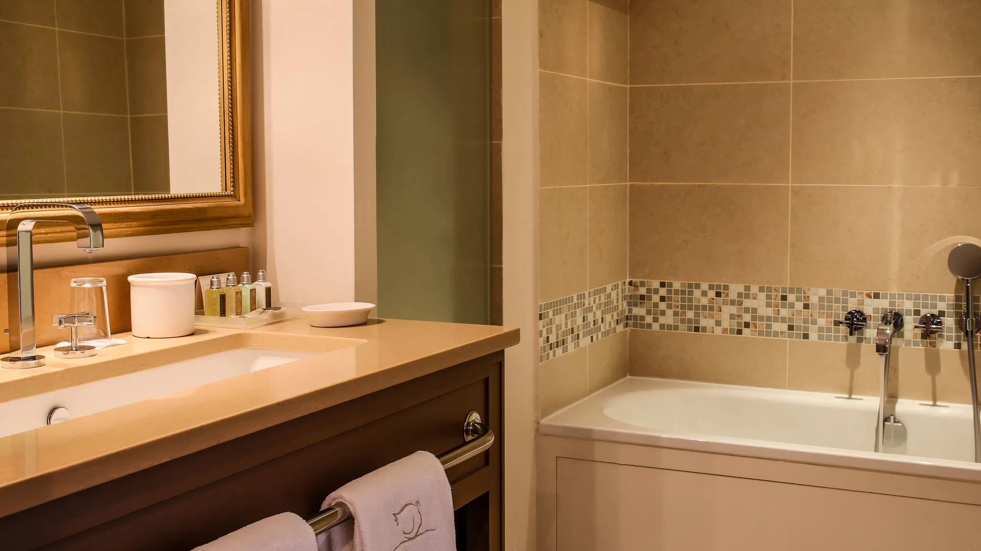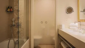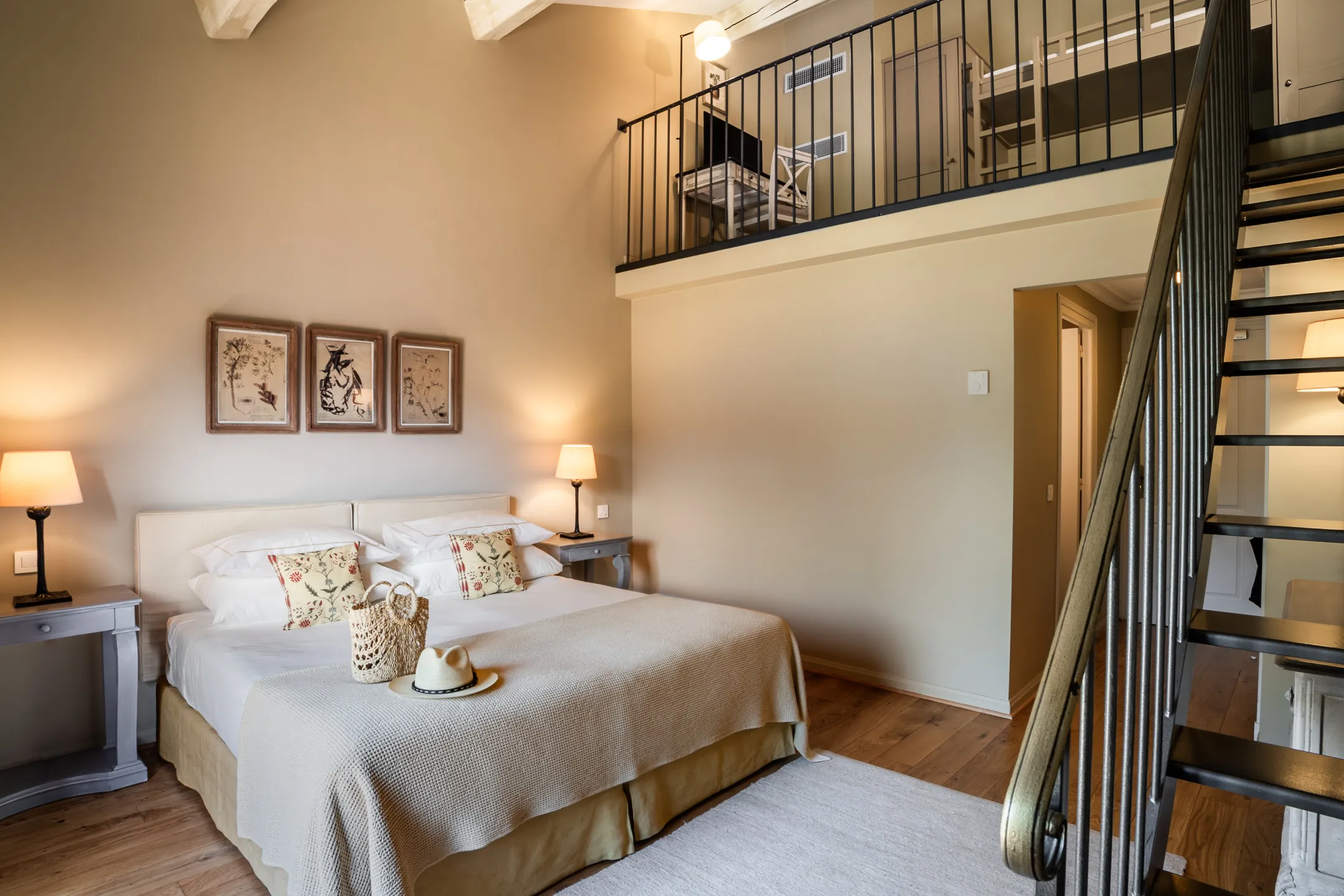 Спальня с кроватью king-size или кроватями twin и гостиной зоной, ванная комната с ванной и/или душевой кабиной, балкон (в некоторых номерах). Некоторые номера двухуровневые, в них гостиная зона расположена в мезонине, а спальня – внизу.