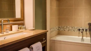 2 спальни (одна – с кроватью king-size или кроватями twin, другая – с кроватью single), ванная комната с ванной и душем.