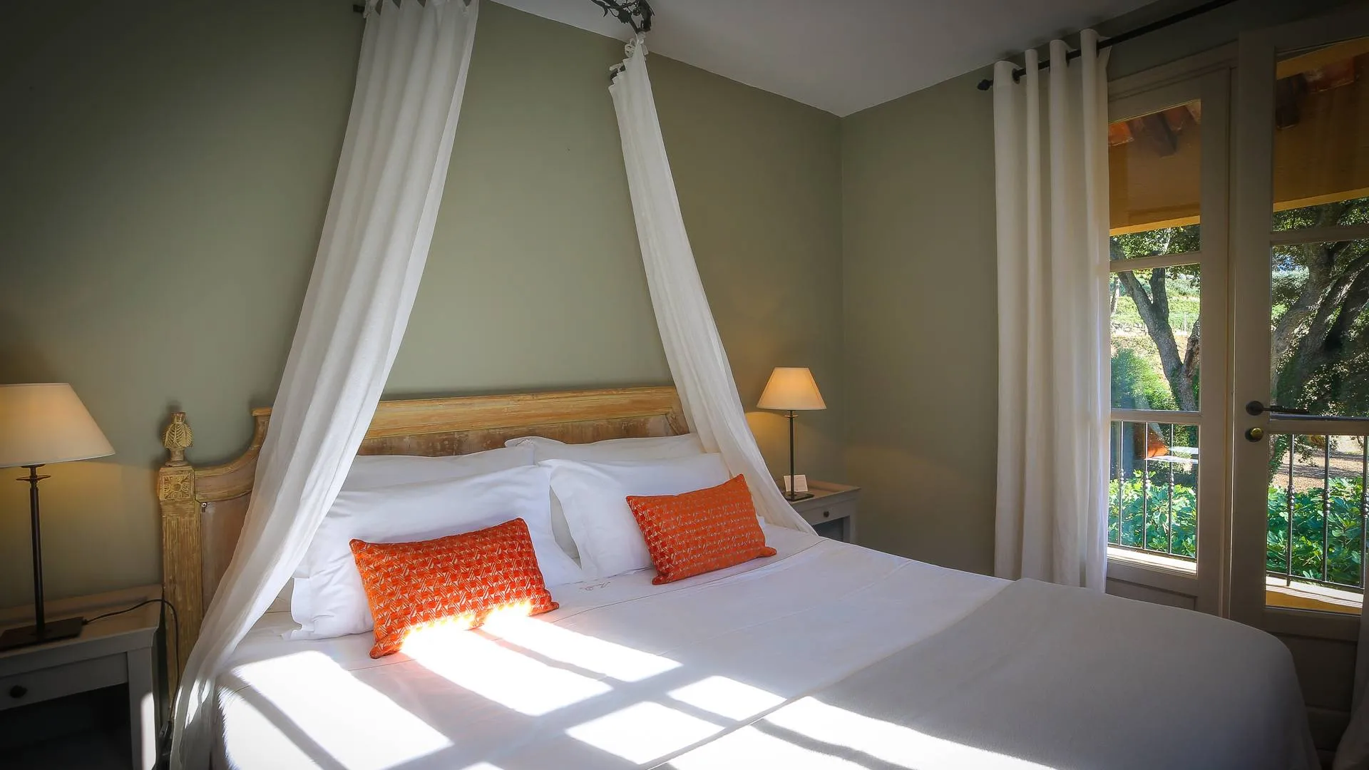 Отель входит в ассоциацию Relais & Châteaux и отмечен одним ключом Michelin (специальная награда за выдающееся гостеприимство). С 1949 года он находится под управлением одной семьи, которой также принадлежит соседний отель La Pinède Plage. Château de Valmer – это бывшая усадьба в средиземноморском стиле, окружённая 5 га садов и виноградников. Номера в основном здании оформлены в провансальском духе: пастельные тона, терракотовая плитка, шторы с цветочным принтом и клетчатые покрывала. Кроме того, в распоряжении гостей есть два домика на деревьях и вилла с частным садом.