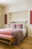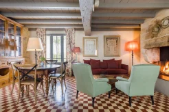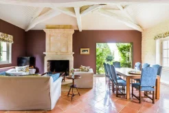 5 спален, 2 гостиные (одна из них – с камином и кухней), 5 ванных комнат, частный сад, подогреваемый бассейн. Гостиные и спальни разделены дверями.