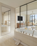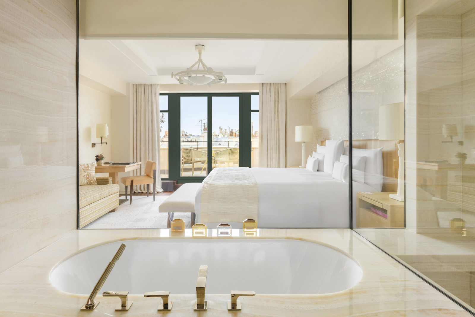 Спальня с кроватью king-size или кроватями twin, гостиная с обеденной зоной, бар, винный погреб, гардеробная, ванная комната с ванной и душевой-хаммамом. Гостиная и спальня разделены дверью.