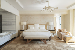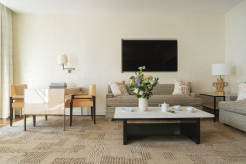 Спальня с кроватью king-size или кроватями twin, гостиная зона, гардеробная, ванная комната с ванной и душевой-хаммамом.