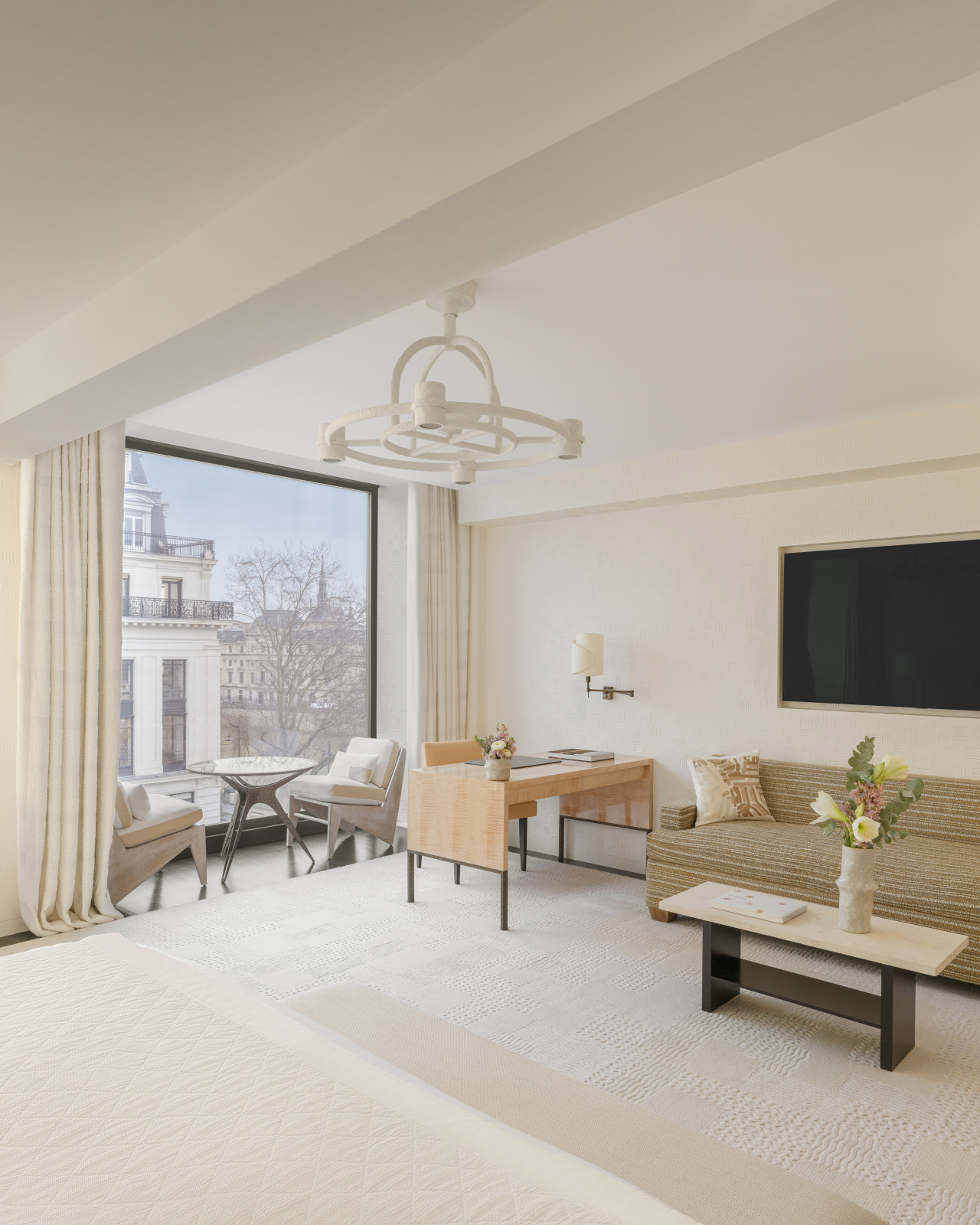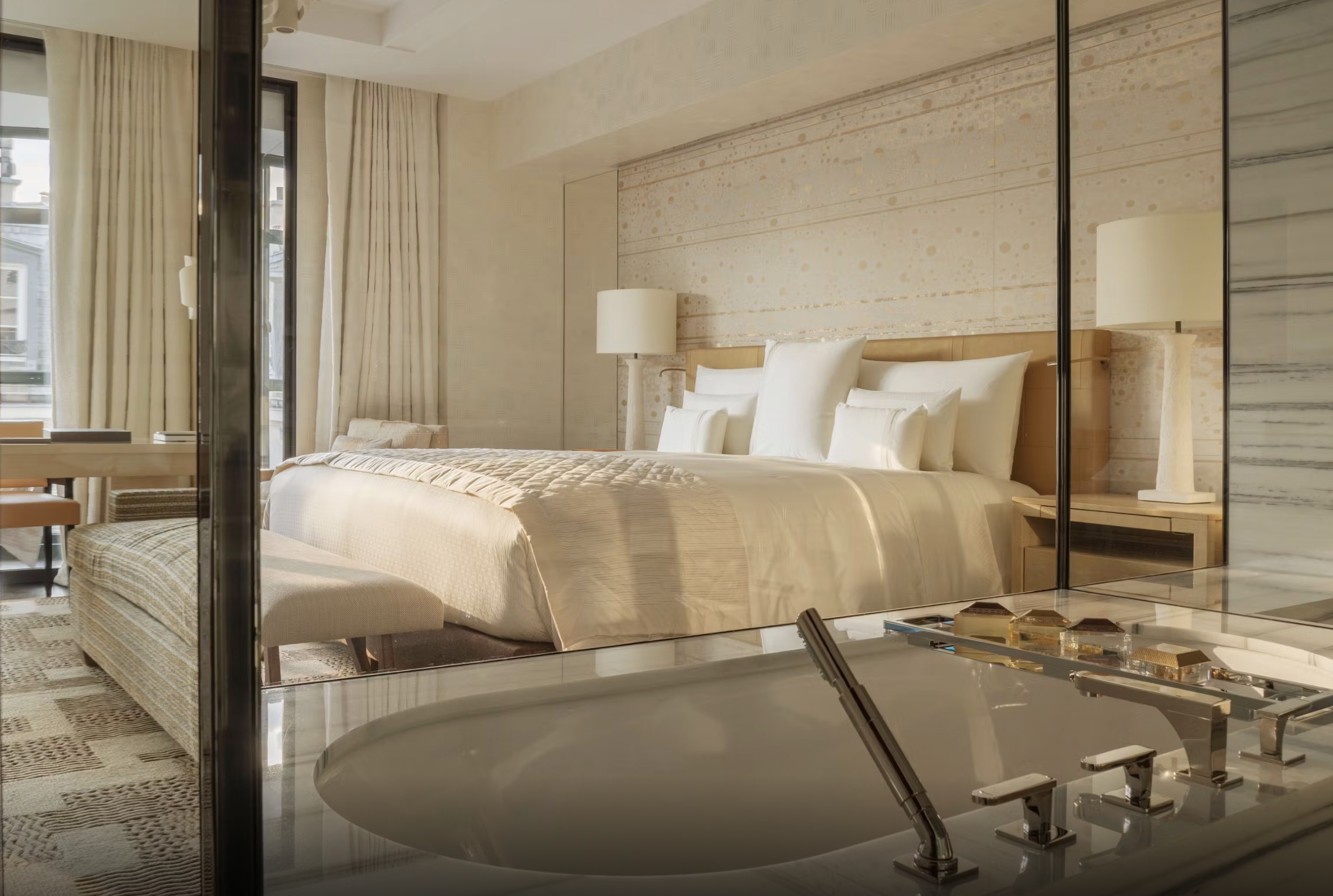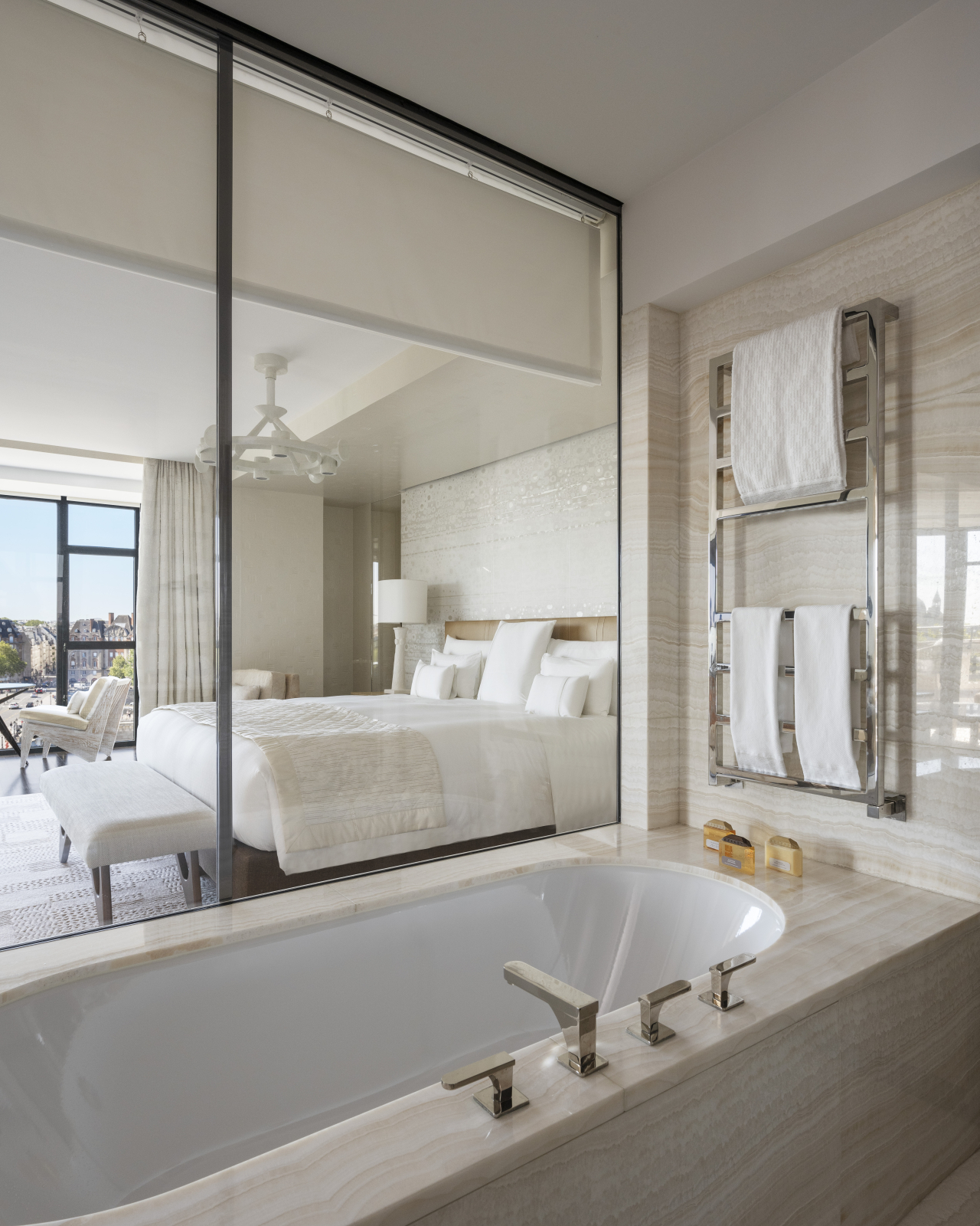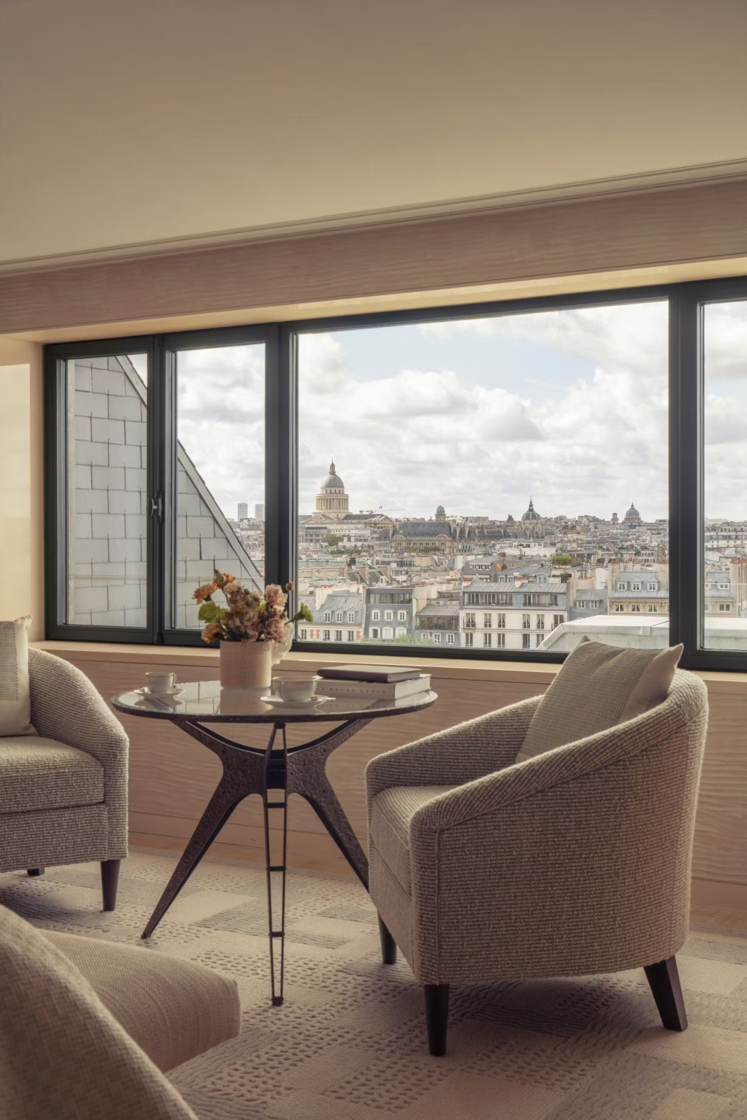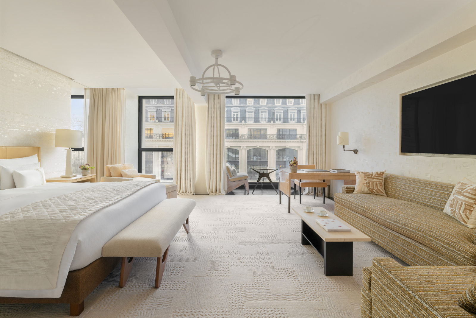 В ходе масштабной реставрации под руководством архитекторов Эдуарда Франсуа и Питера Марино современные технологии и стандарты ультрароскоши были бережно интегрированы в аутентичное архитектурное наследие. В отеле всего 72 номера, включая люксы и апартаменты. Номера в золотисто-бежевой цветовой гамме с панорамным остеклением наполнены светом и обставлены дизайнерской мебелью. Многие из них имеют впечатляющие виды на Сену, Эйфелеву башню и собор Парижской Богоматери. На верхнем этаже находится крупнейший в Париже двухуровневый пентхаус с бассейном, кинотеатром и панорамной террасой. Гостей сопровождают неповторимые ароматы от парфюмера Франсуа Демаши. Доступен сервис персонального батлера.