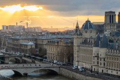 Вид на Нотр-Дам-де-Пари, Сену и Эйфелеву башню.