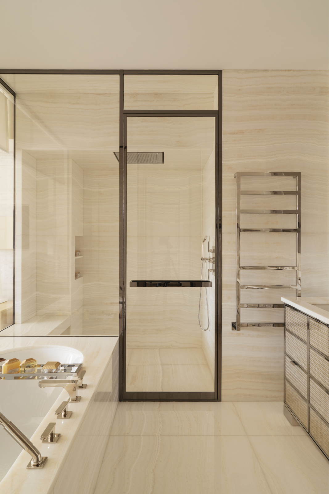 Двухуровневые апартаменты, целиком занимают 8-й и 9-й этажи. 7 спален с кроватями king-size, 2 гостиные с обеденными зонами, 7 гардеробных, 7 ванных комнат (каждая с ванной и душевой-хаммамом), крытый бассейн, хаммам, сауна, комната для спа-процедур, тренажёрный зал, комната с ТВ-проектором, частный лифт, парковка, террасы. Гостиные и спальни разделены дверями.