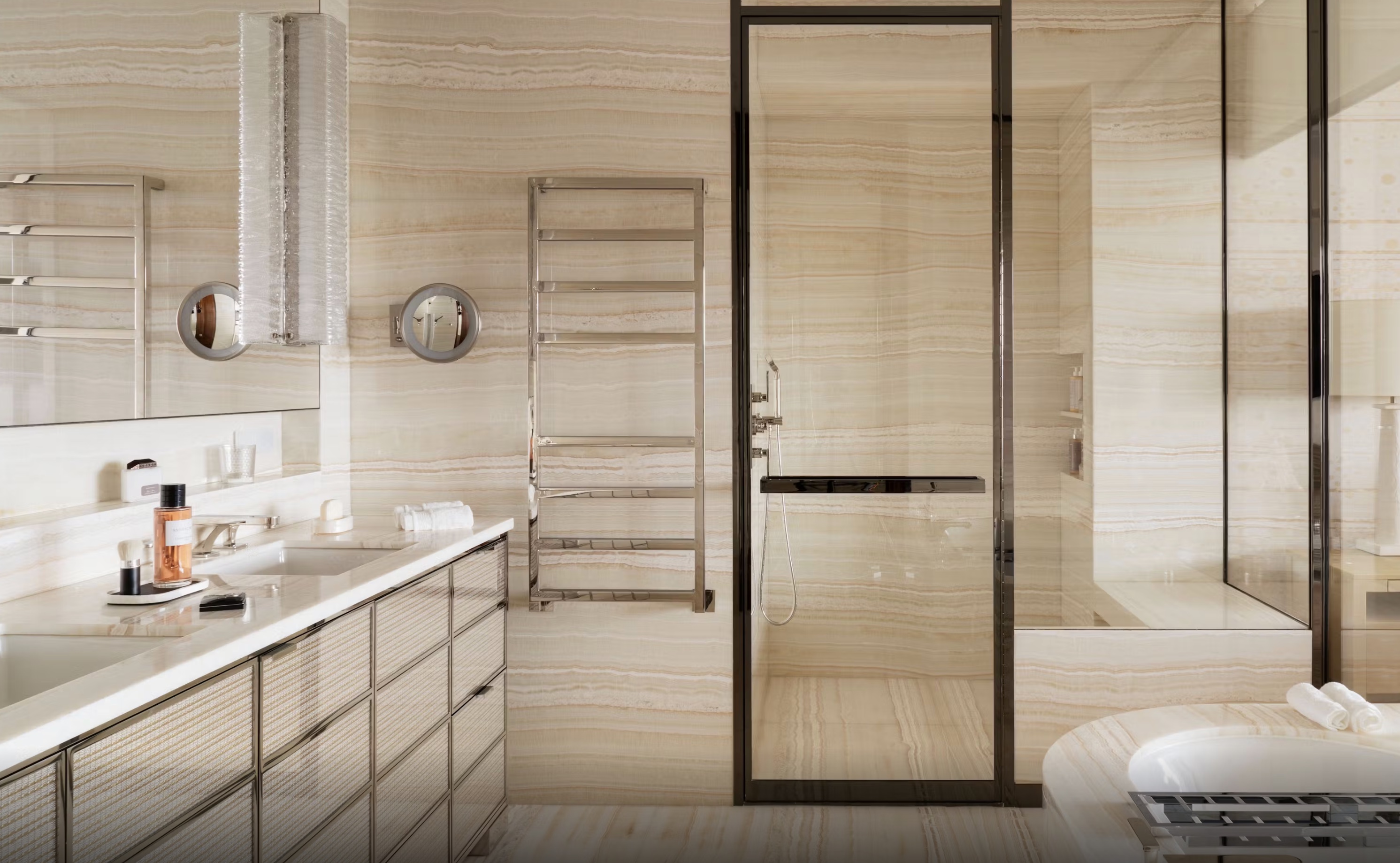 Двухуровневый номер. 4 спальни с кроватями king-size, гостиная с обеденной зоной, 4 гардеробные, 4 ванные комнаты (каждая с ванной и душевой-хаммамом), крытый бассейн, хаммам, сауна, комната для спа-процедур, тренажёрный зал, комната с ТВ-проектором, террасы. Гостиная и спальни разделены дверями.