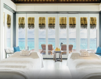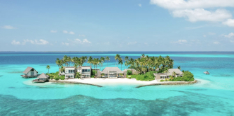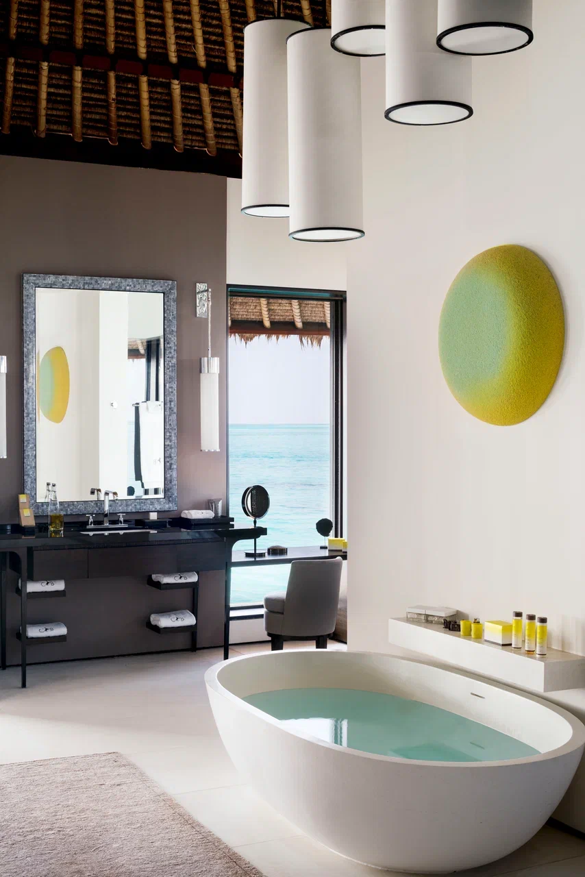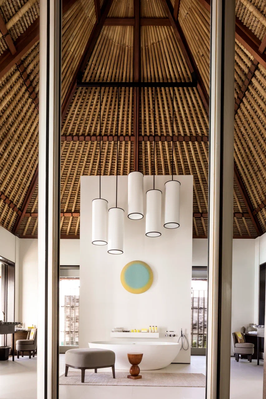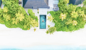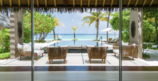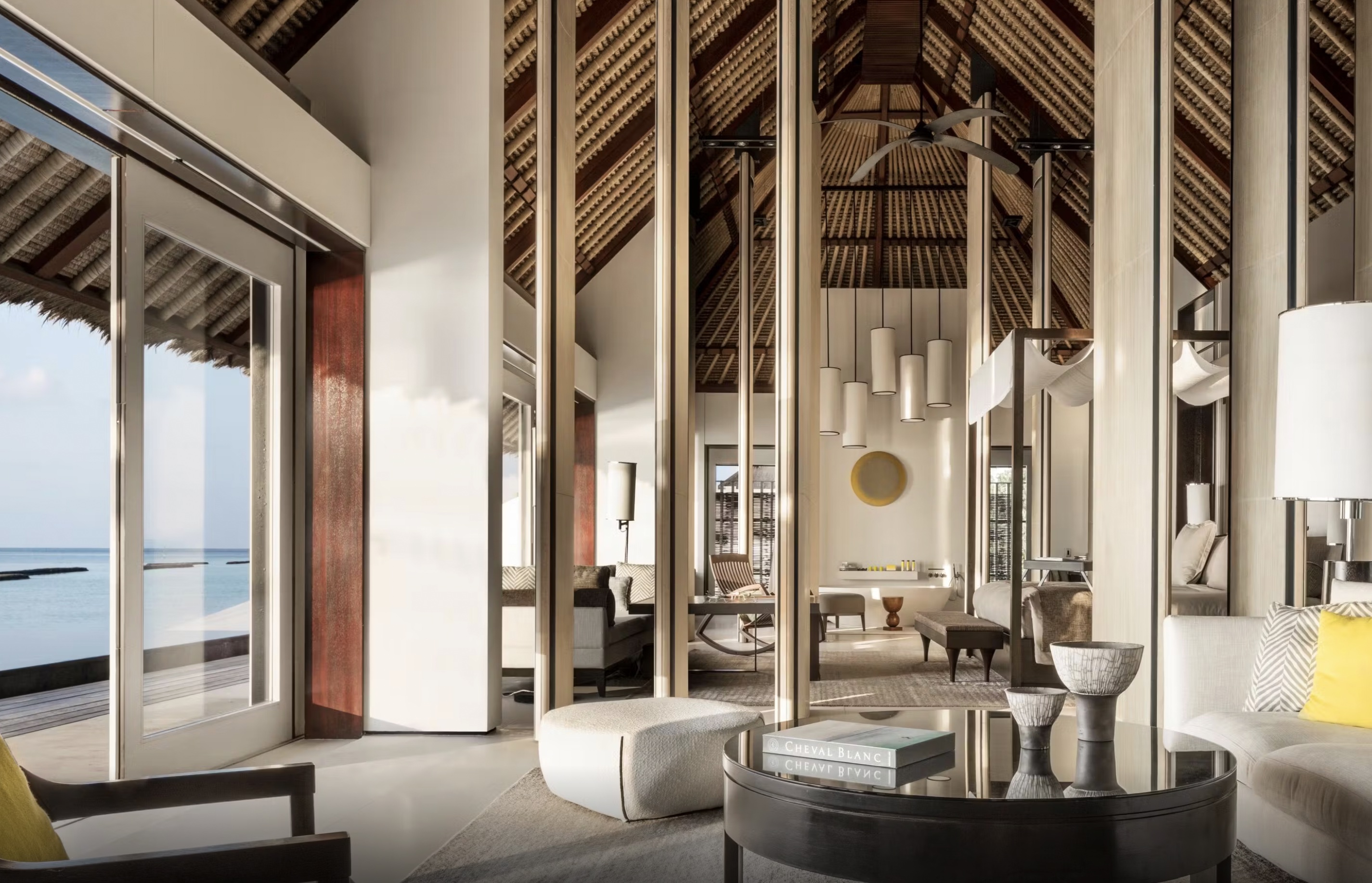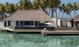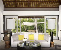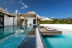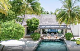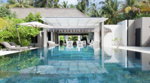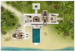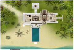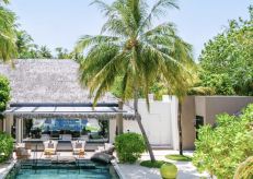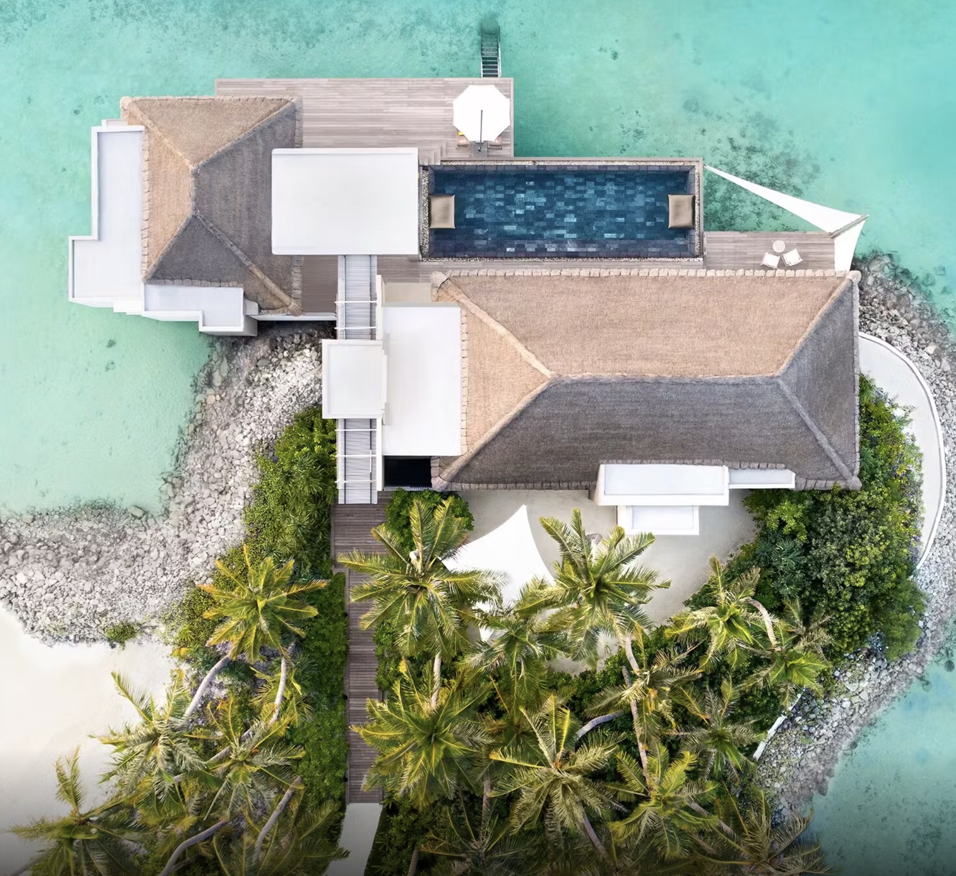 Вилла расположена на отдельном острове. 4 спальни (три – с кроватями king-size, одна – с 2 кроватями queen-size), гостиная, обеденная зона, гардеробные, 4 ванные комнаты, ванна на открытом воздухе, павильон для медитаций, спа-павильон, тренажёрный зал, частный бар, кинотеатр, террасы, сады, частный открытый бассейн, частный причал. Гостиная и спальни разделены дверями.