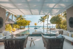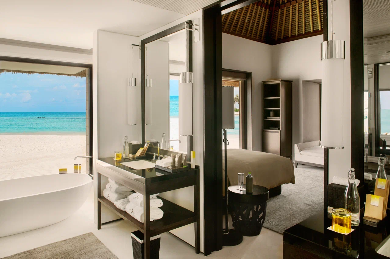 Вилла на берегу. 2 спальни с кроватями king-size или кроватями twin, гостиная, гардеробная, 2 ванные комнаты (каждая с ванной и душевой кабиной), душ на открытом воздухе, терраса с беседкой и обеденной зоной, частный открытый бассейн, частный сад. Гостиная и спальни разделены дверями.