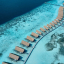 2 виллы на воде, соединённые деревянной дорожкой. 3 спальни, 3 ванные комнаты, 2 гостевых туалета.