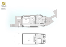 Двухэтажная вилла в виде лодки на воде. 1 спальня, 1 ванная комната, 1 гостевой туалет.
