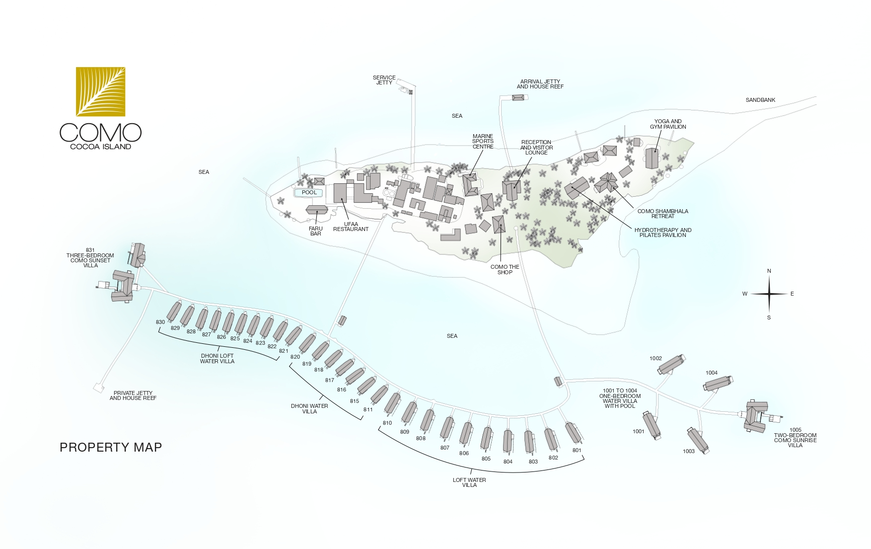 Входит в сеть COMO Hotels and Resorts. COMO Cocoa Island – стильный бутик-отель, в котором всего 33 виллы на воде. Архитектурой они напоминают традиционные лодки дони. Интерьеры оформлены в светлых оттенках морской палитры. Высокие потолки, полы из тёмного тика, белые стены задают эстетику чистого минимализма.