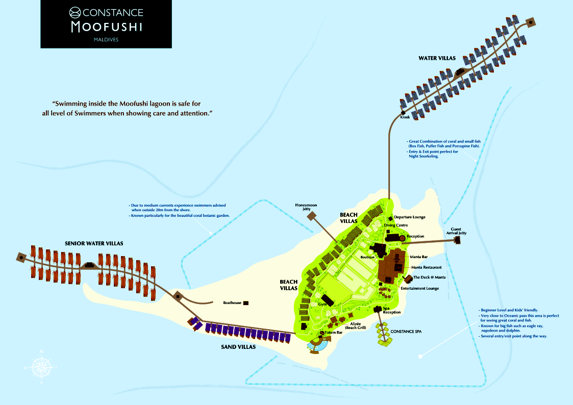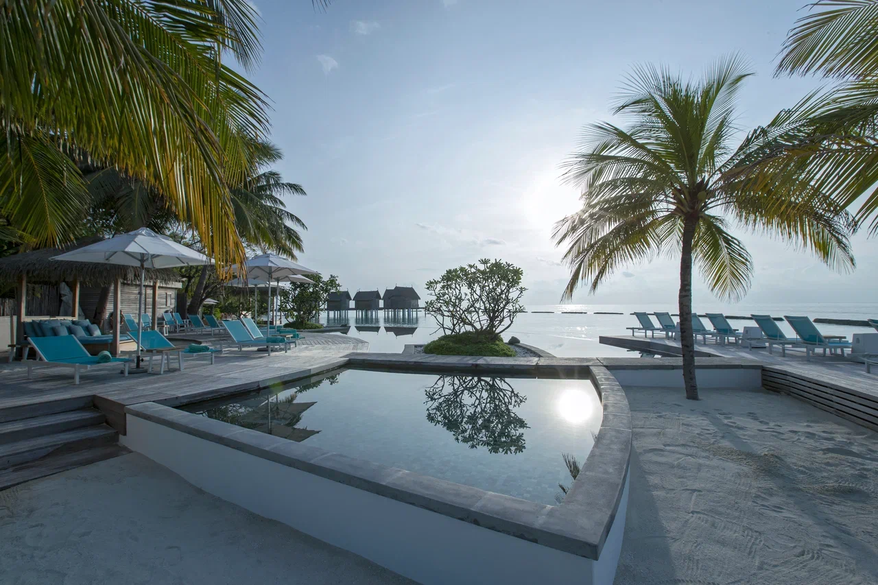 Расположение – атолл Южный Ари. Лагуны вокруг него считаются одними из лучших мест для дайвинга в мире. Отель находится на острове с домашним рифом.