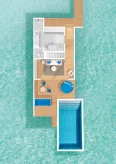 Вилла на воде. Спальня с кроватью king-size, ванная комната с ванной и душевой кабиной, терраса с бассейном, гамаком над водой и прямым спуском к воде.