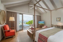 Вилла на берегу. Спальня с кроватью king-size, ванная комната на открытом воздухе с ванной и 2 душами, терраса с бассейном.