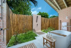 Вилла на берегу. 2 спальни (одна – с кроватью king-size, другая – с кроватями twin), 2 ванные комнаты на открытом воздухе (каждая с ванной и 2 душами), терраса.