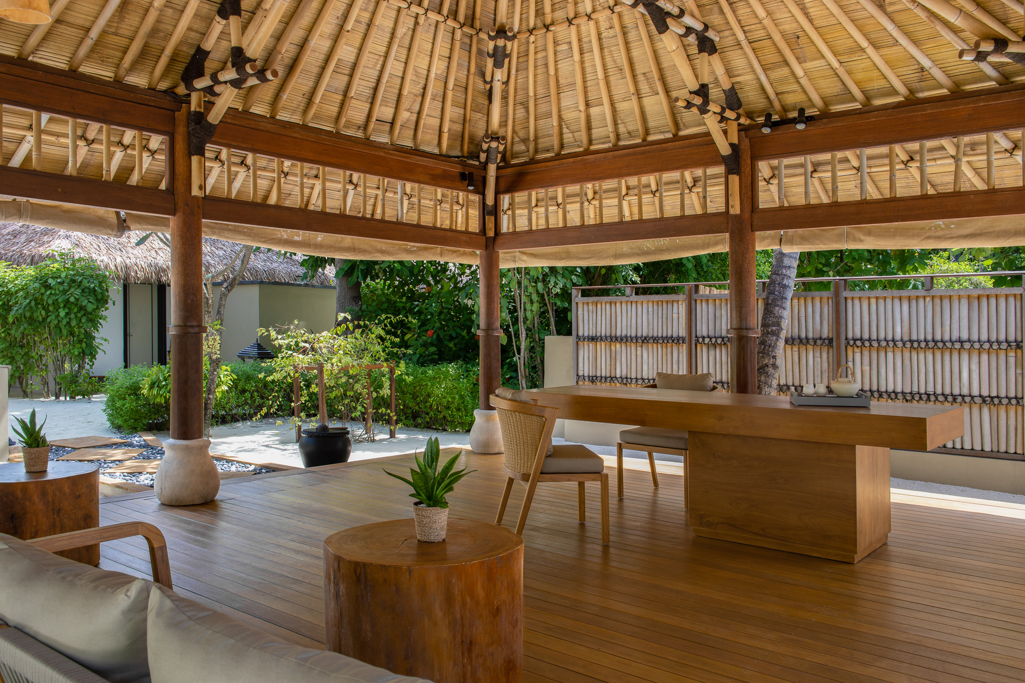 Вилла на берегу. Спальня с кроватью king-size, гостиная зона, ванная комната с джакузи на открытом воздухе во внутреннем дворике, терраса.