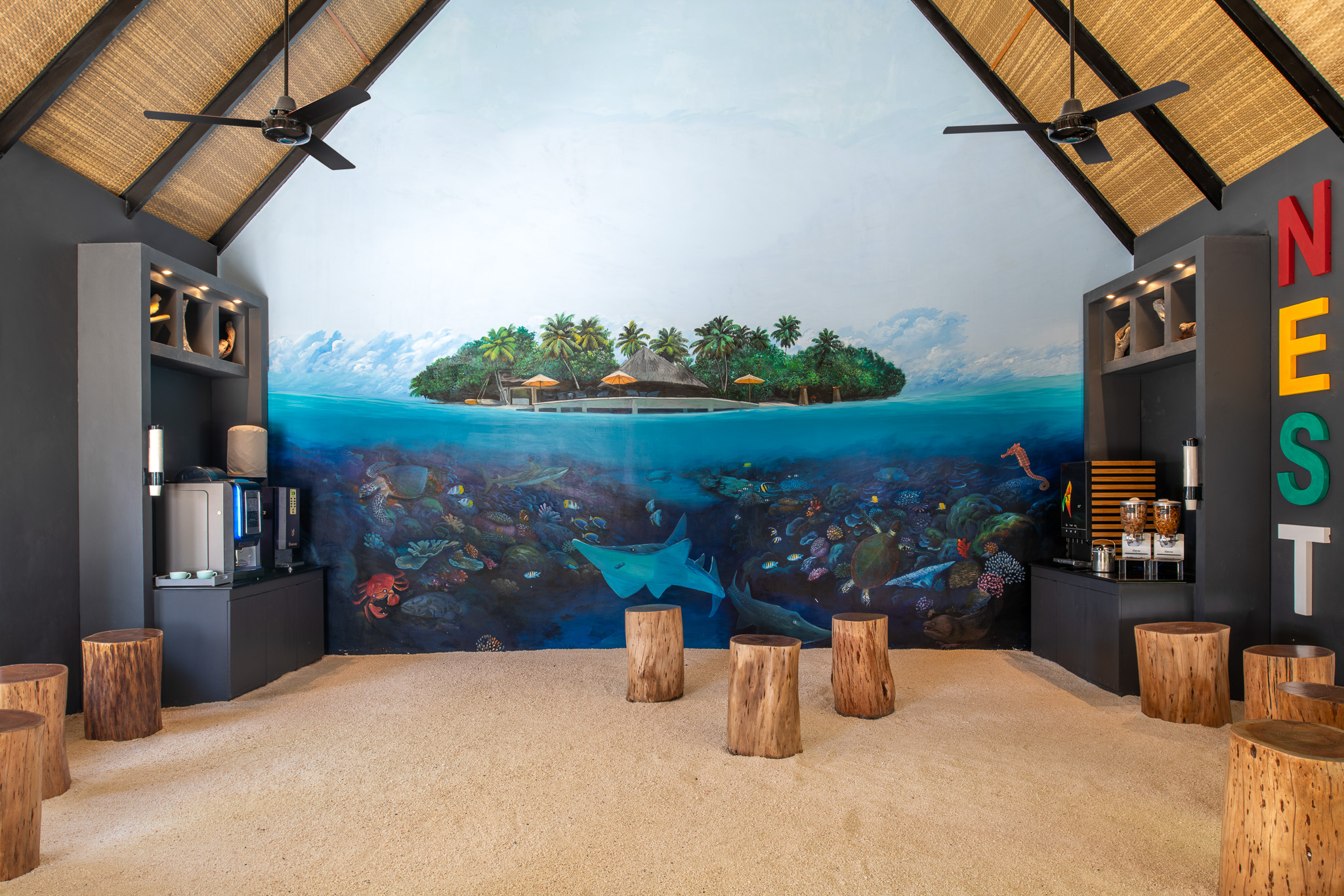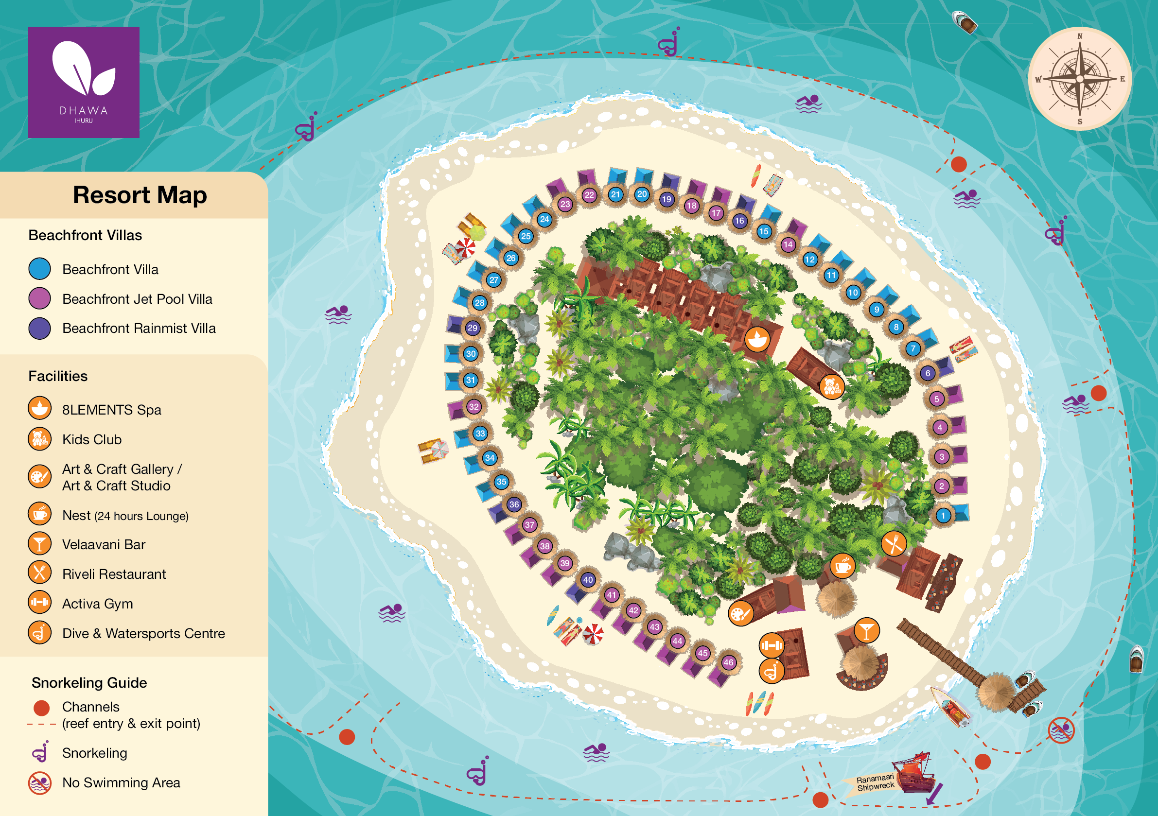Расположен в атолле Северный Мале, на острове с домашним рифом. Недалеко от берега находится популярный спот для дайвинга – искусственный риф, созданный на месте затонувшего судна Rannamaari.