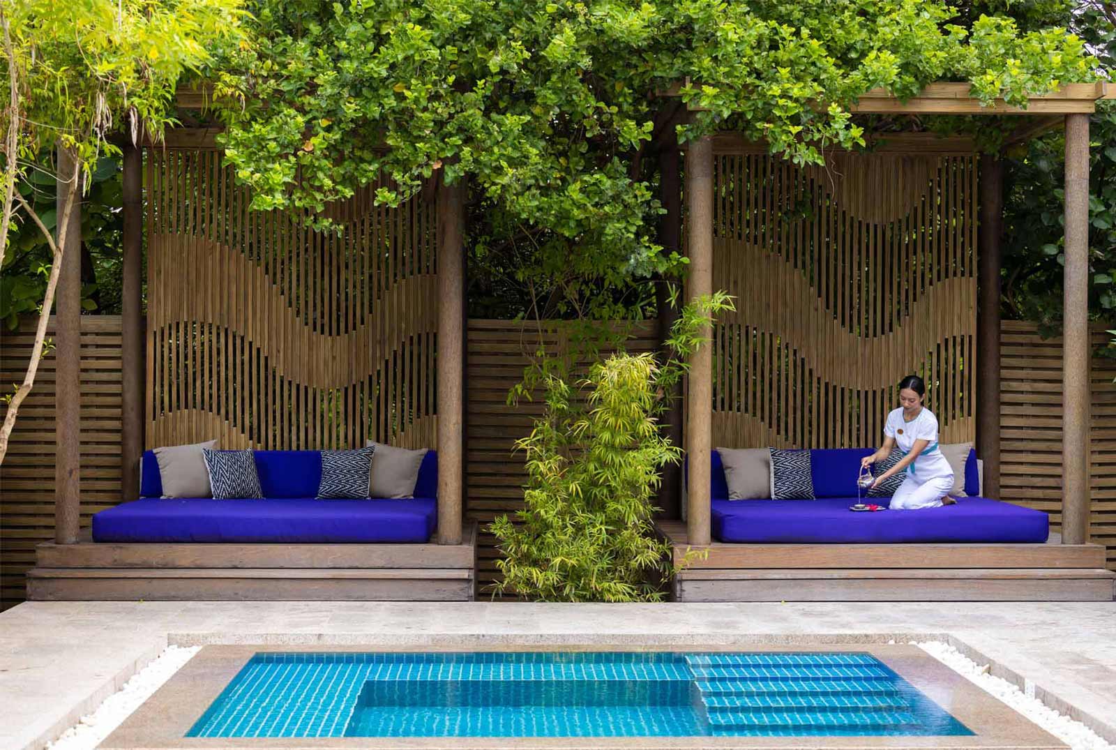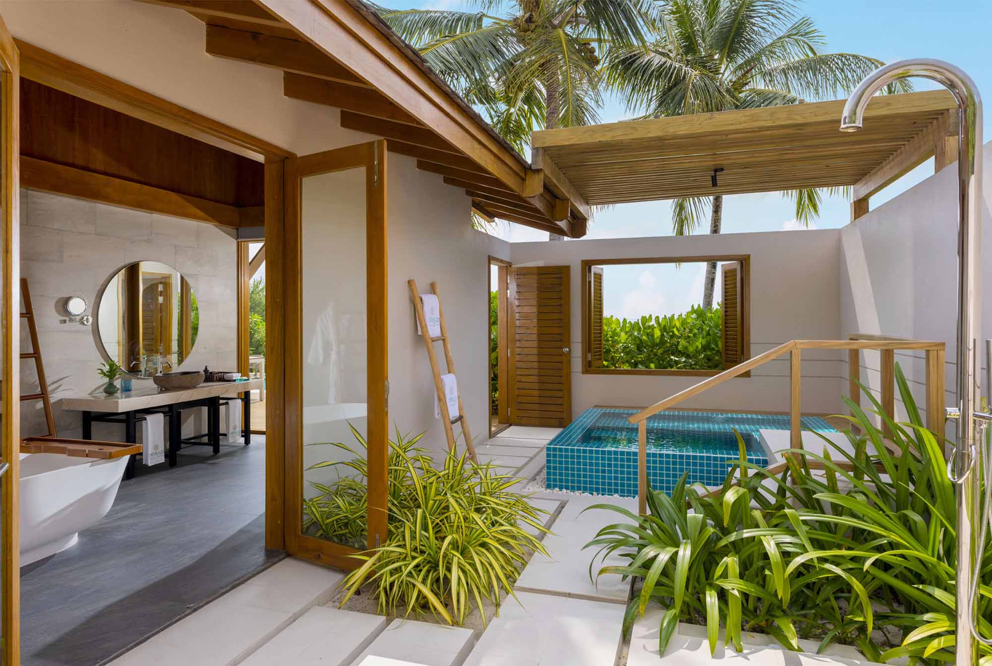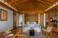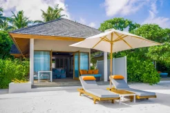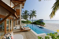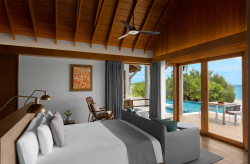 Вилла на берегу. 2 спальни (одна – с кроватью king-size и гостиной зоной, другая – с кроватями twin), гардеробная, 2 ванные комнаты (каждая с душевой кабиной), ванна частично на открытом воздухе, душ на открытом воздухе, терраса c бассейном.