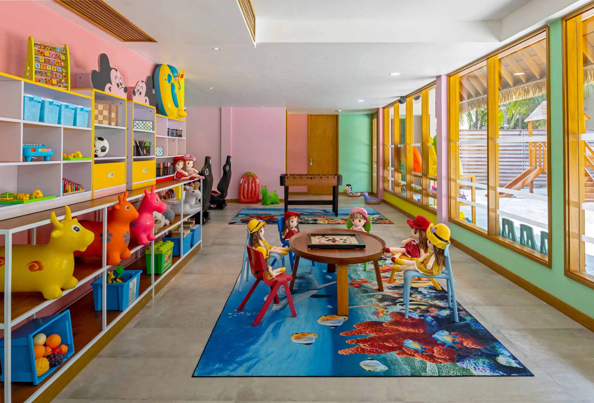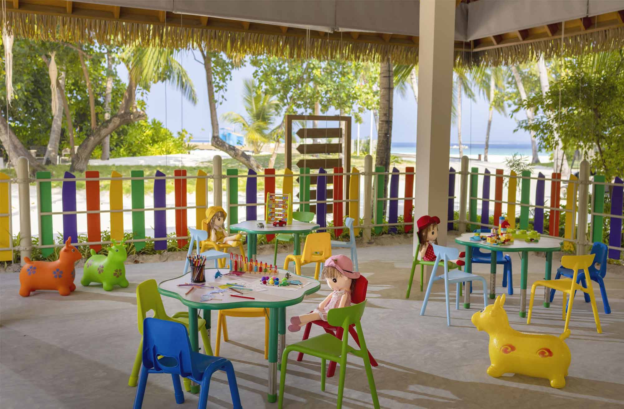 Ресторан Mediterraneo находится на воде. За ним есть спуск к домашнему рифу. На острове реализована собственная система опреснения и бутилирования воды. Спа-центр состоит из восьми спа-бунгало, стоящих посреди тропических зарослей; процедуры проводят с косметикой Elemis. Курорт работает по системе «делюкс всё включено».
