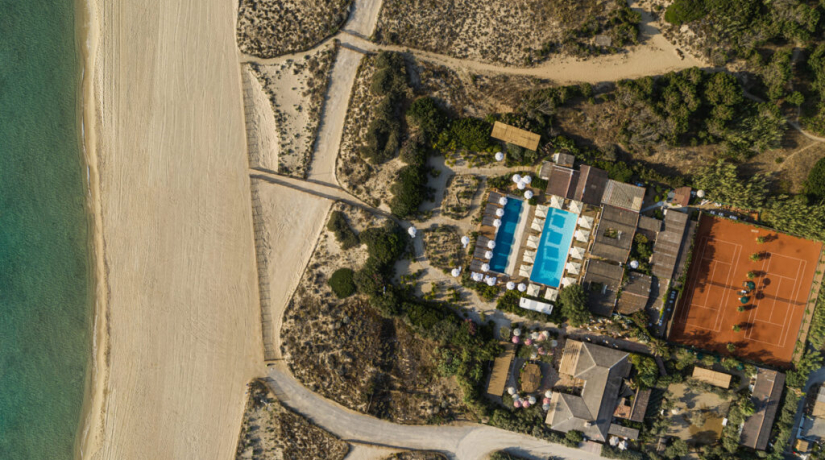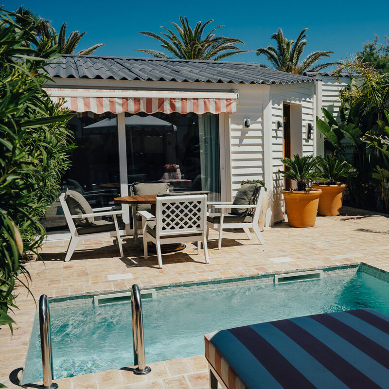 9 бунгало, 1 вилла, ресторан, бар, частный песчаный пляж, 2 открытых бассейна, спа-центр, тренажёрный зал (в помещении и на открытом воздухе), терраса для занятий йогой, центр водных видов спорта, 2 корта для тенниса (Tennis Club John McEnroe), привилегированный доступ в гольф-клуб Golf Club Saint-Tropez (10 минут пути на автомобиле), прокат электровелосипедов, салон красоты, детский клуб, сады с гортензиями, парковка.
