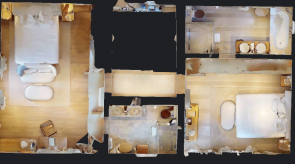 На 2-м этаже: 2 спальни с кроватями king-size, 2 ванные комнаты (одна – с ванной и душевой кабиной, другая – с душевой кабиной).