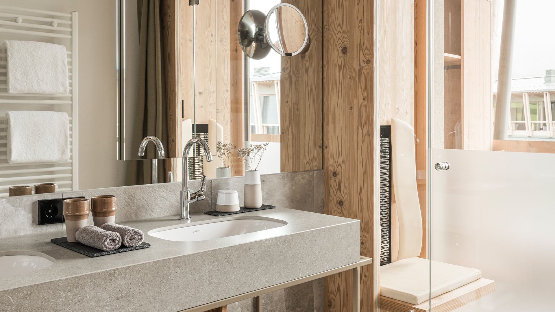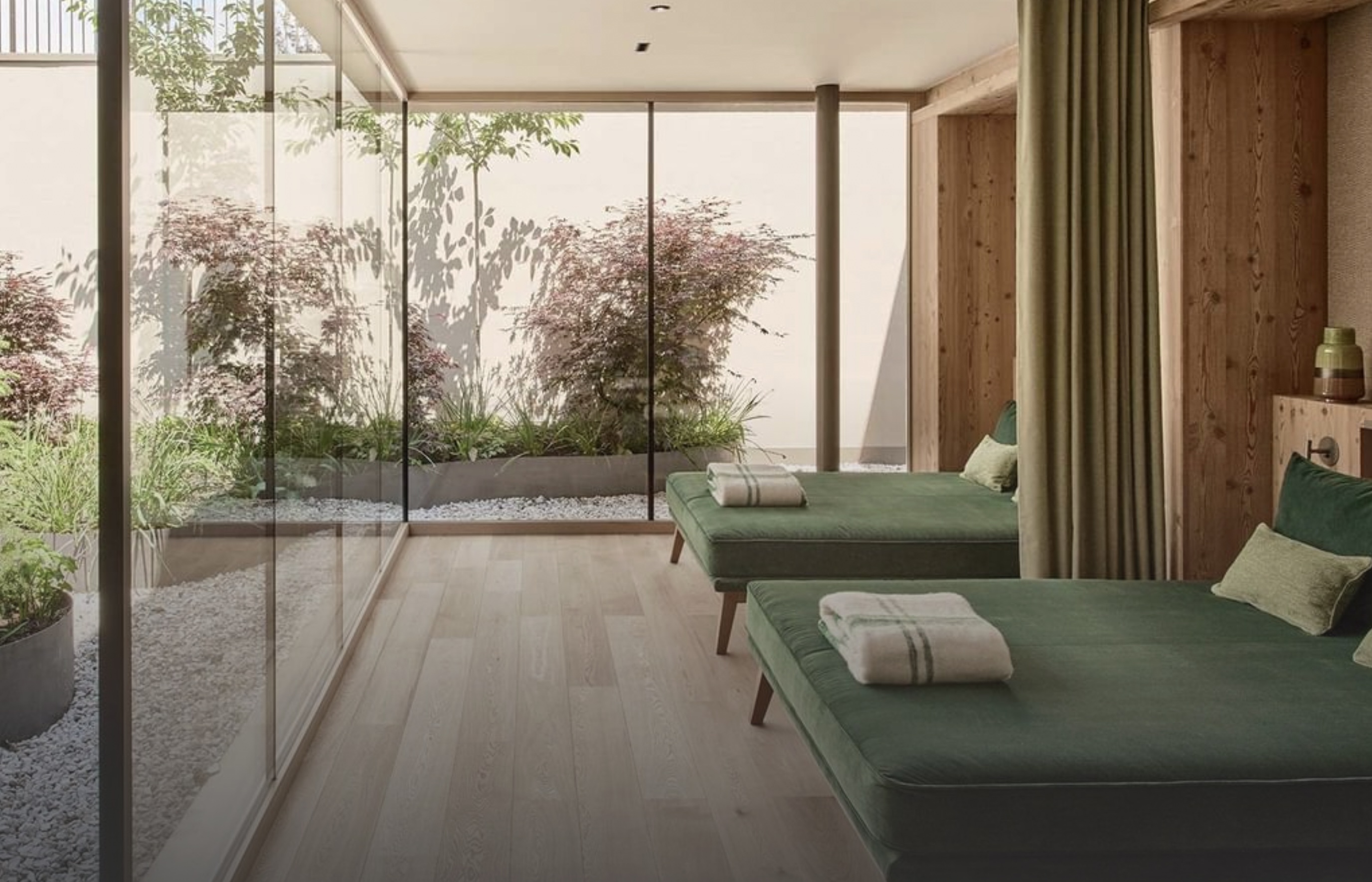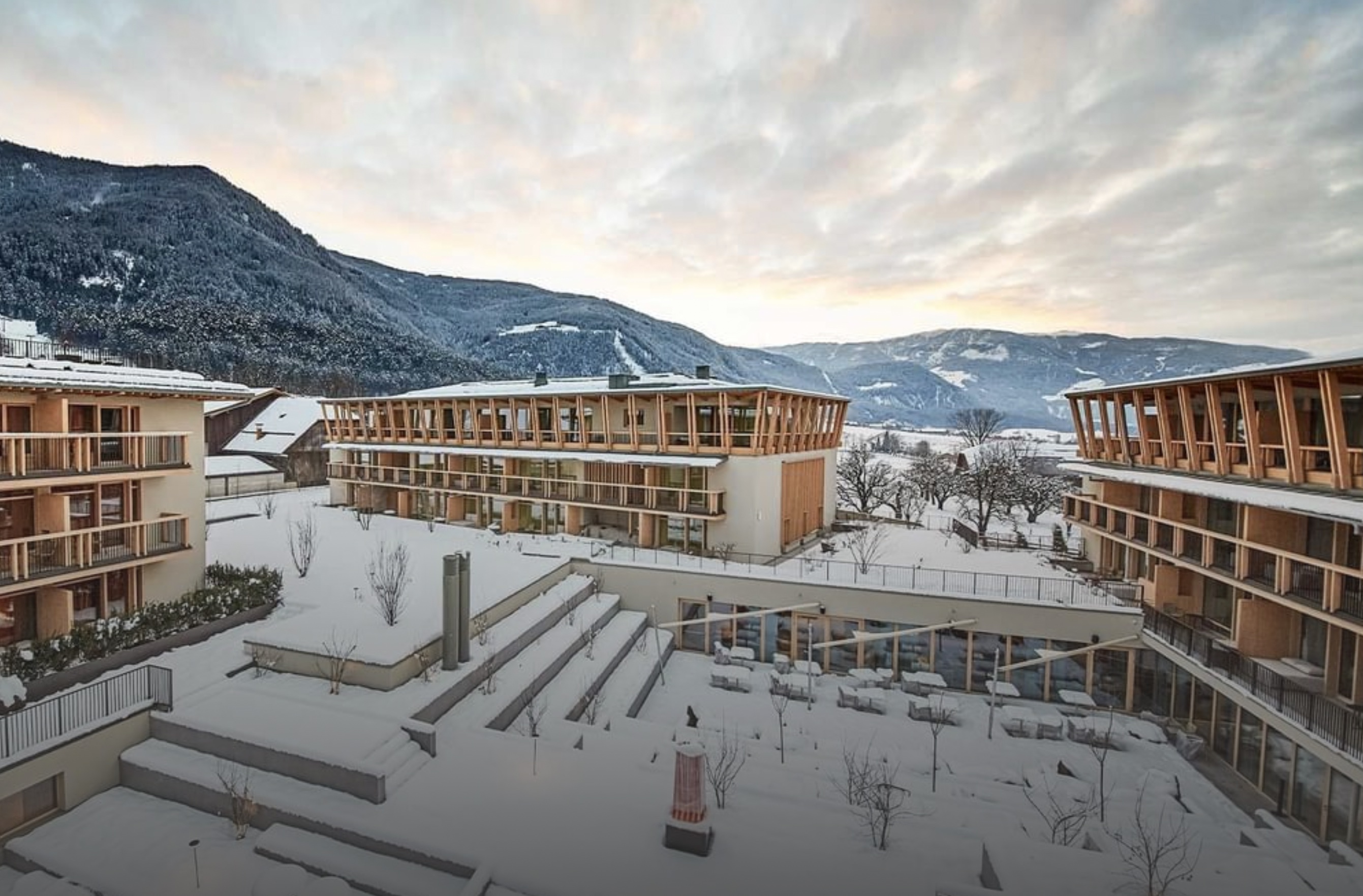 Входящий не только в сеть Falkensteiner Hotels & Residences, но и в престижную ассоциацию The Leading Hotels of the World отель представляет собой образец современной альпийской архитектуры. Его автор, признанный итальянский архитектор и дизайнер Маттео Тун, соединил в проекте лаконичный функционализм, благородные натуральные материалы и фантастические виды на горы из панорамных окон. Большая часть номеров отделана деревом, а в качестве изголовий кроватей выступают уникальные тканевые панно. Цветовая палитра, вдохновлённая четырьмя сезонами, предлагает четыре варианта декора: красный (лето), синий (зима), зелёный (весна) и жёлтый (осень). Каждый номер оборудован шведской стенкой, а некоторые имеют личную инфракрасную или финскую сауну.