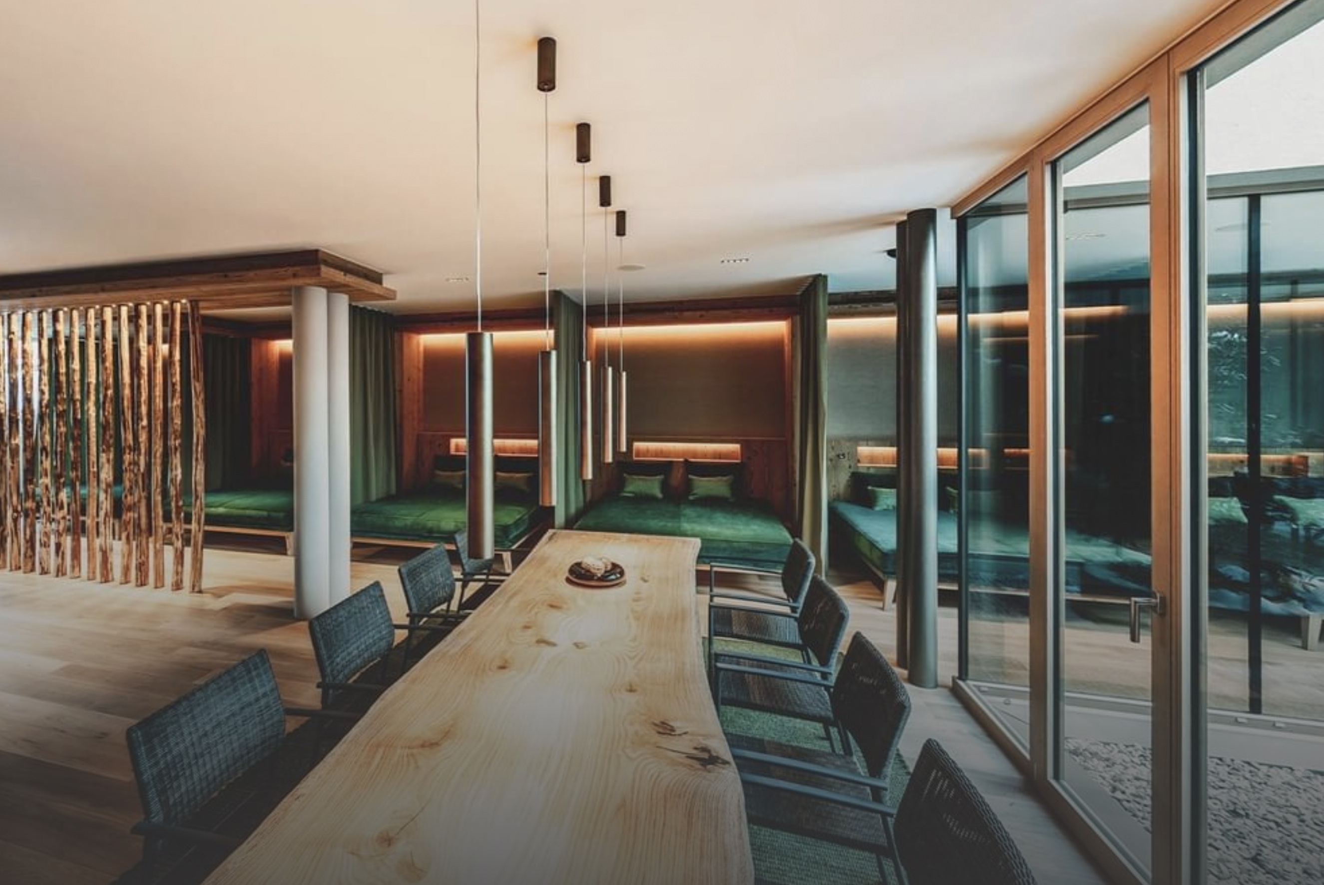 Гастрономическим сердцем отеля является ресторан 7Summit, исповедующий философию слоуфуд под руководством шеф-повара Федерико Карсили. В его авторском меню гармонично сплетены кулинарные традиции Южного Тироля и других горных регионов Европы. Особой гордостью служит открытый бассейн только для взрослых на крыше отеля, из которого открывается панорамный вид на Альпы. Спа-центр Acquapura Summit SPA, раскинувшийся на площади 1,4 тыс. кв. м, включает 25-метровый плавательный бассейн на открытом воздухе. Здесь проводятся процедуры на основе премиальных линеек Pharmos Green Luxury и Vitalis Dr. Joseph.