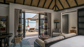 Вилла на воде. 2 спальни c кроватями king-size, гостиная, 2 гардеробные, 3 ванные комнаты (две – с душевой кабиной, одна – с ванной и душевой кабиной), душ на открытом воздухе, терраса с бассейном и прямым спуском к воде. Гостиная и спальни разделены дверями.